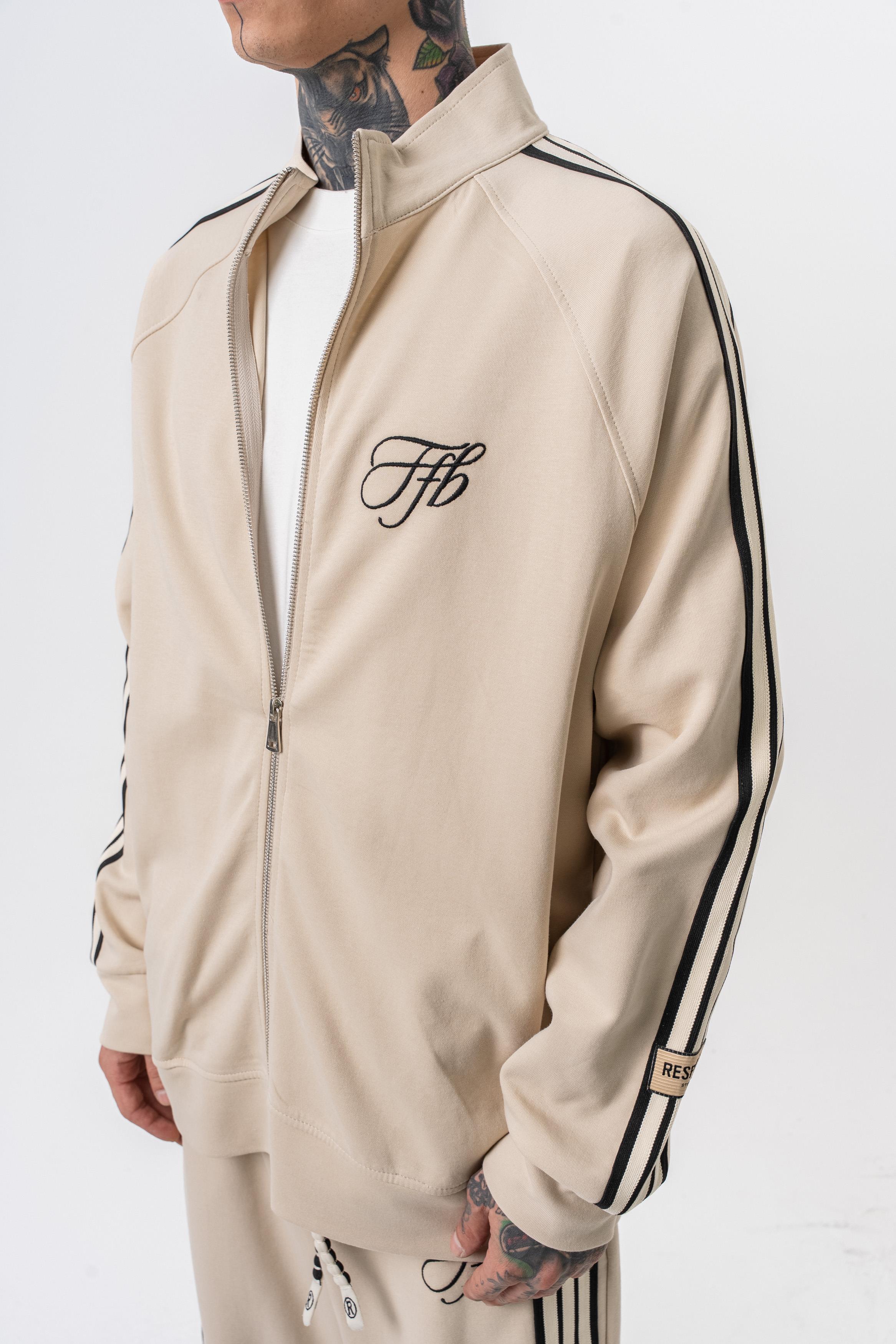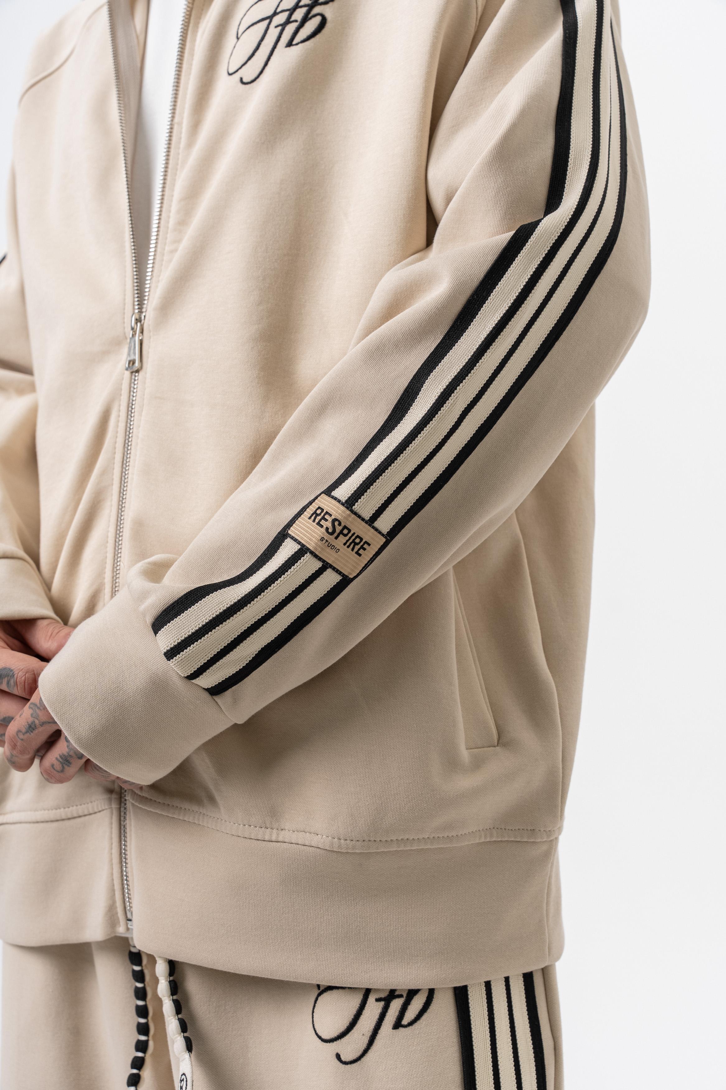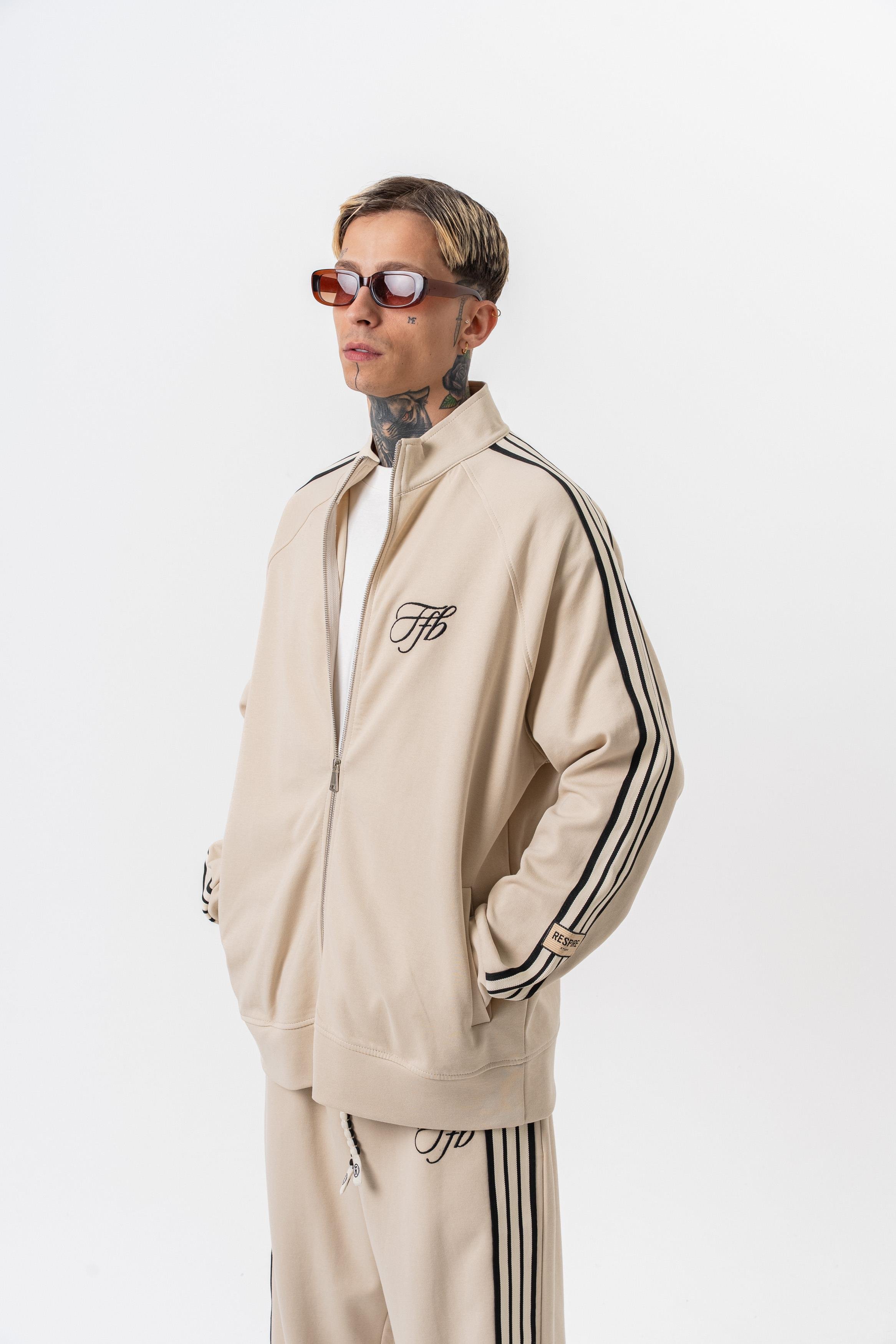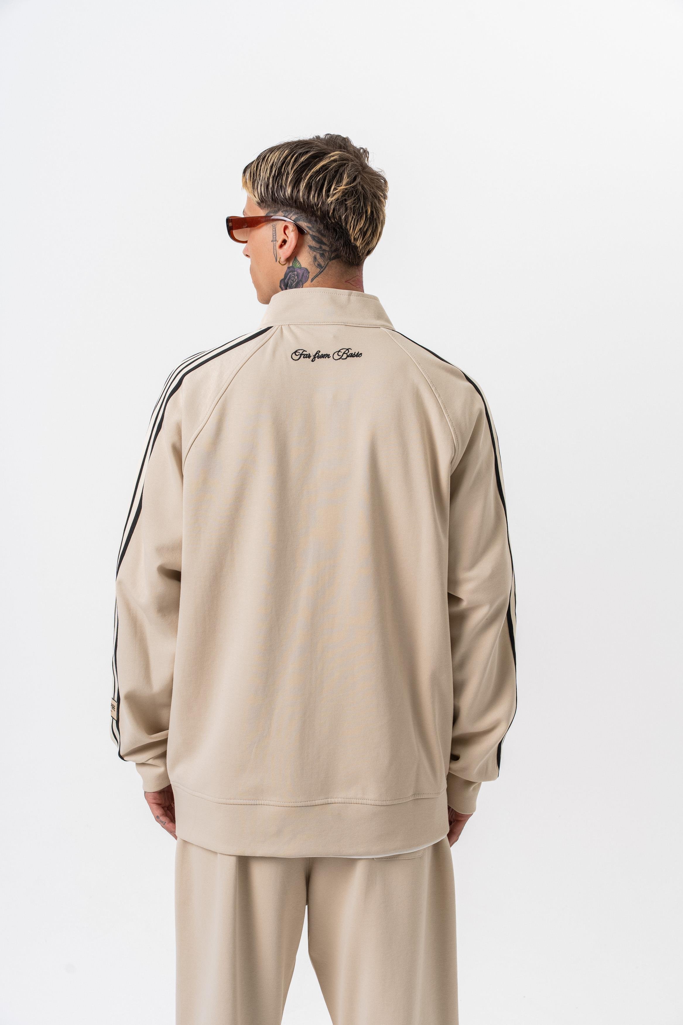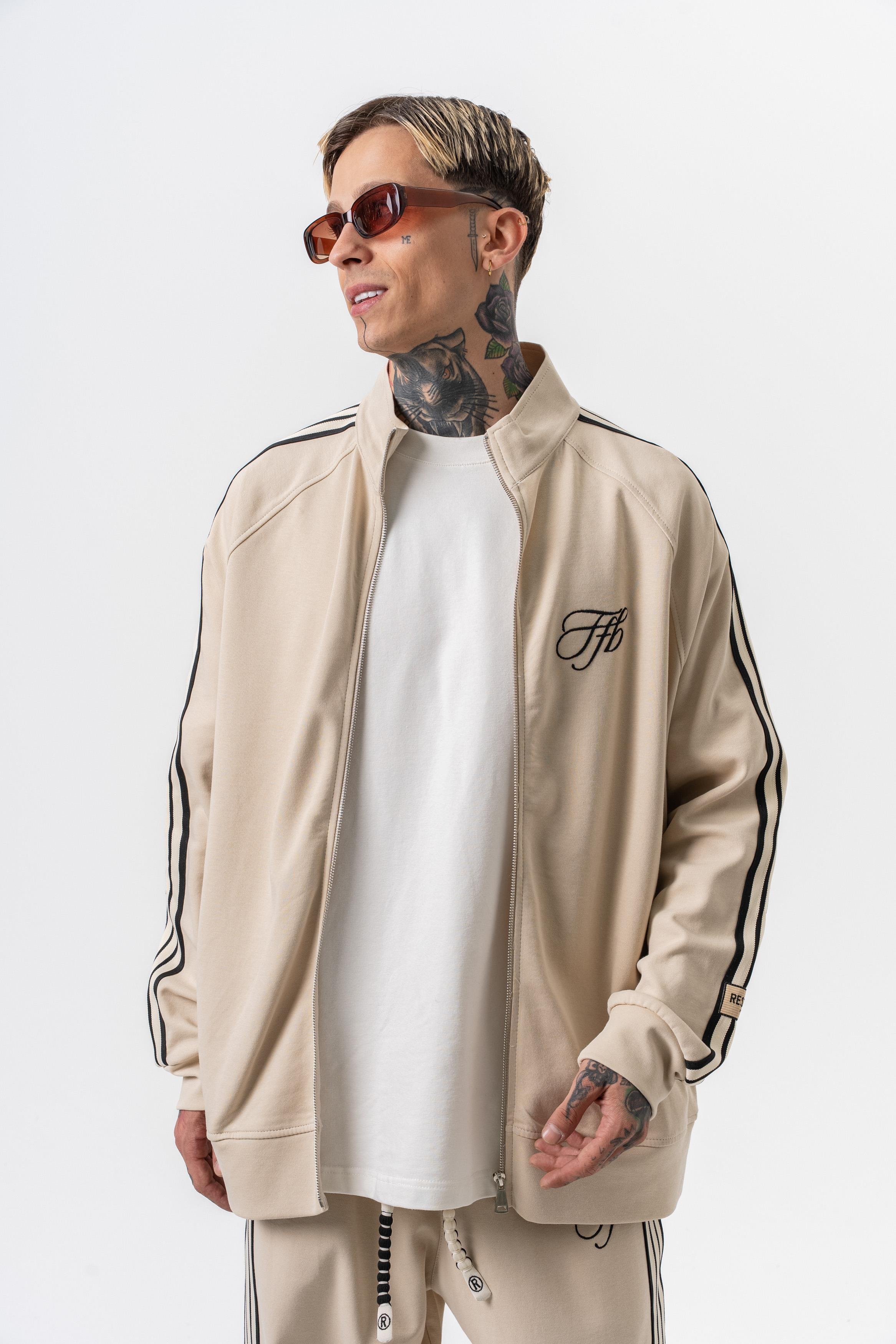 Erkek 3'lü Şerit Detaylı Dik Yaka Doubleface Zip Oversize Sweatshirt Bej (56261044Bej)