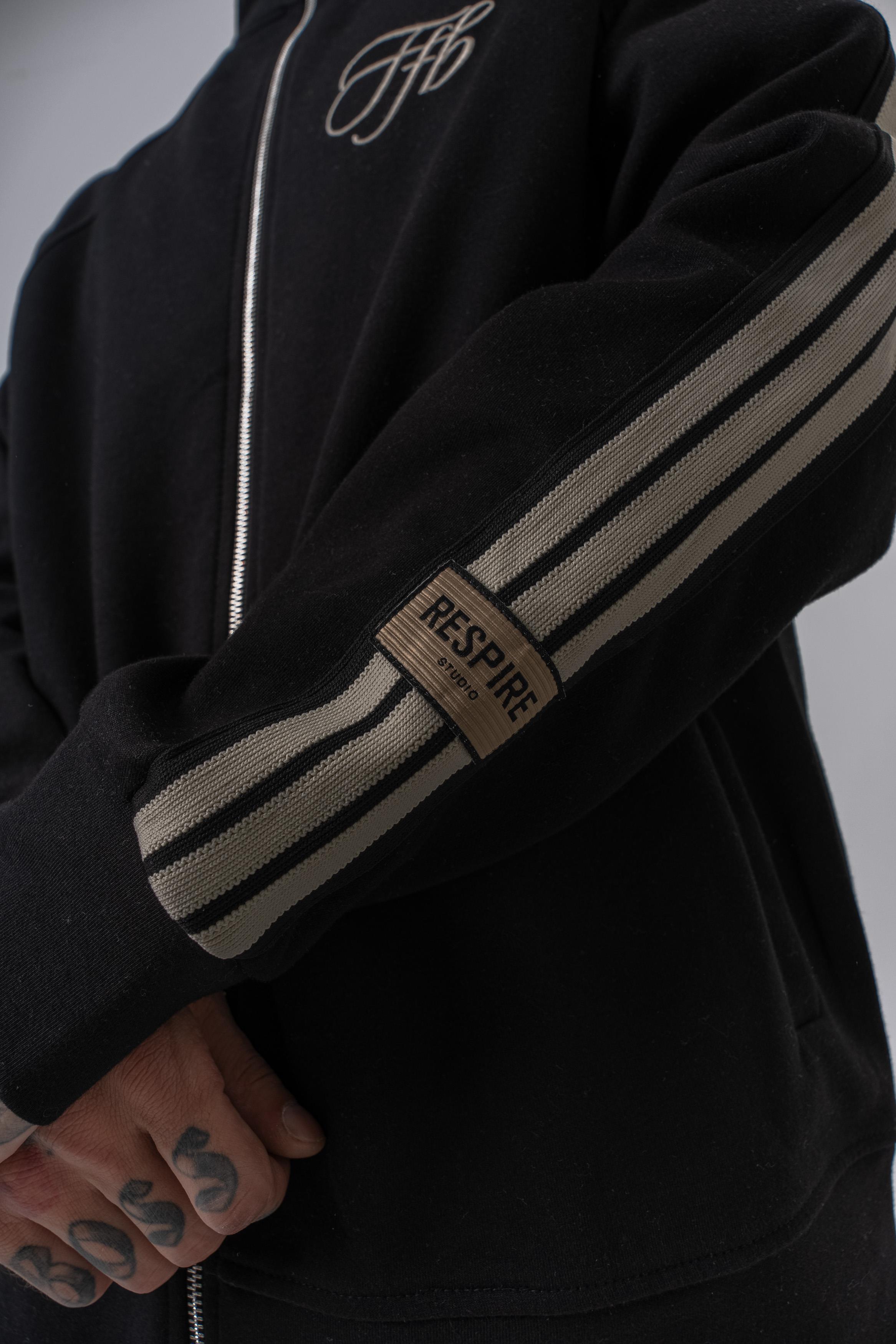 Erkek 3'lü Şerit Detaylı Dik Yaka Doubleface Zip Oversize Sweatshirt Siyah (56261044Siyah)