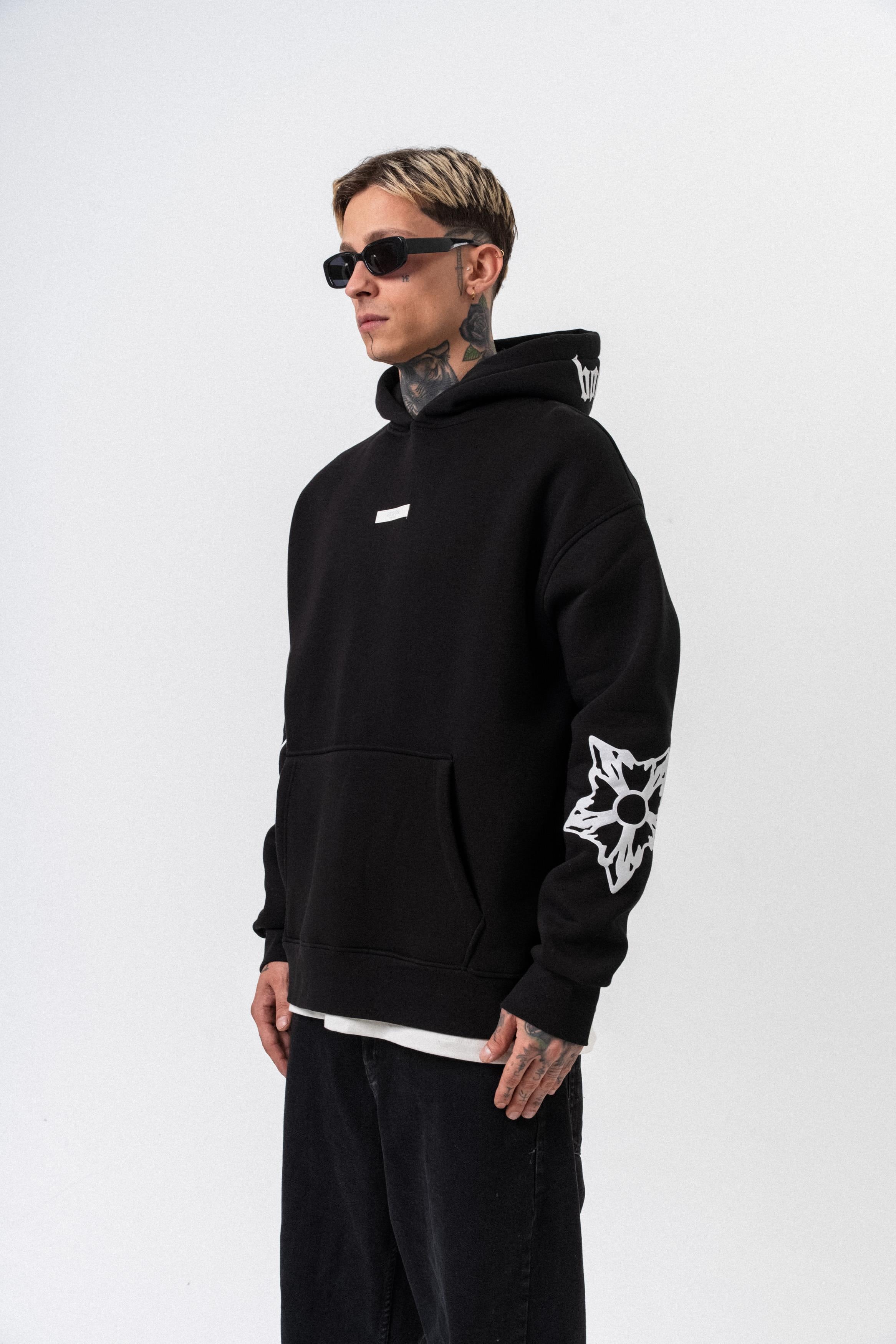 Erkek Astro Mode Baskılı Kapüşonlu Oversize Hoodie Siyah (56261025Siyah)