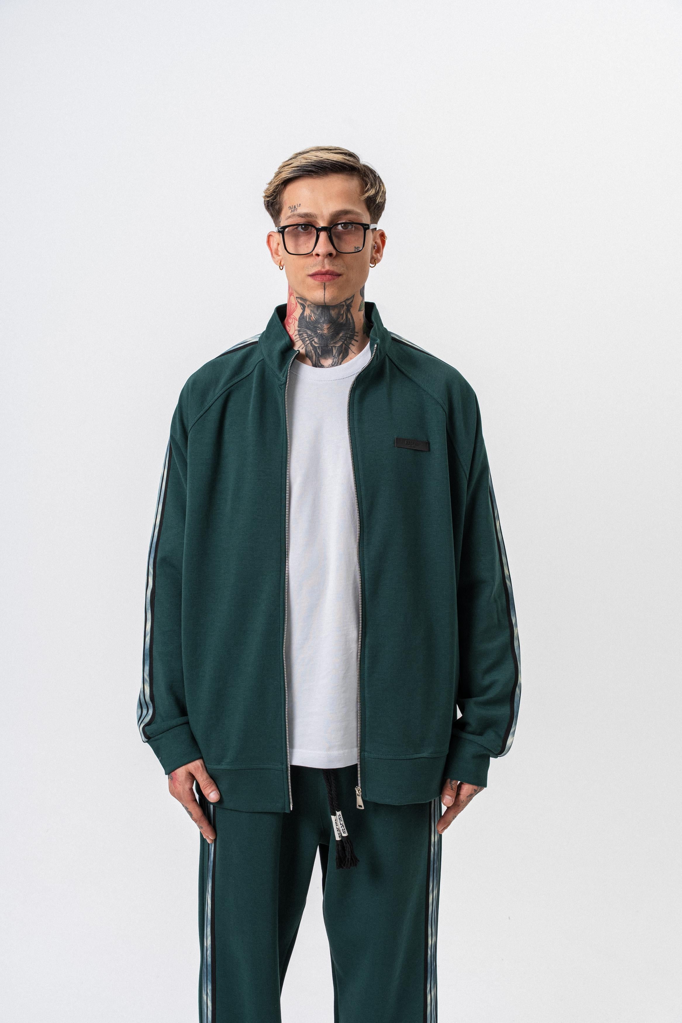 Erkek Dark Striped Şerit Detaylı Dik Yaka Doubleface Zip Oversize Sweatshirt Nefti (56261041Nefti)