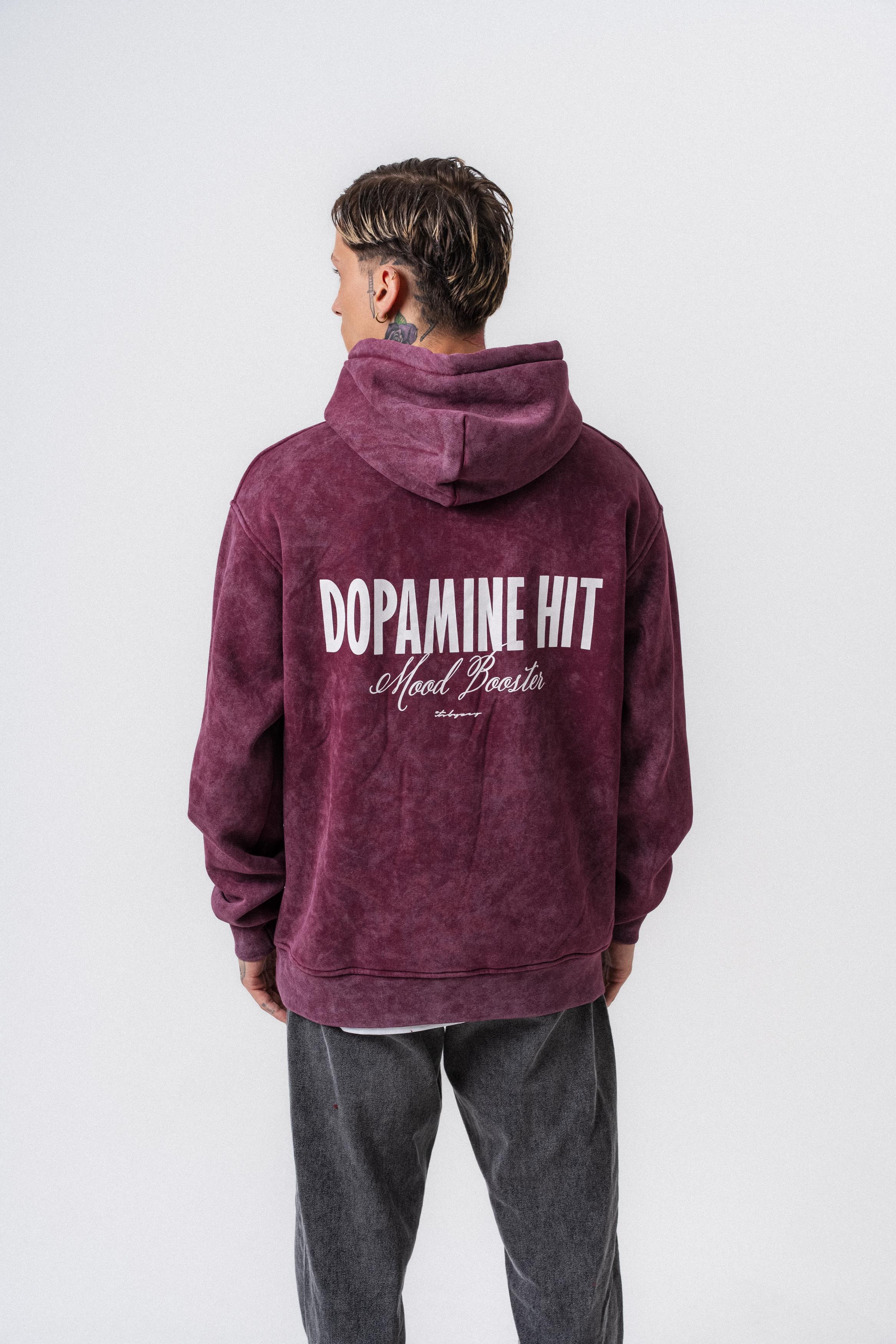 Erkek Dopamine Hit Baskılı Kapüşonlu Oversize Hoodie Vişne (56261024Vişne)