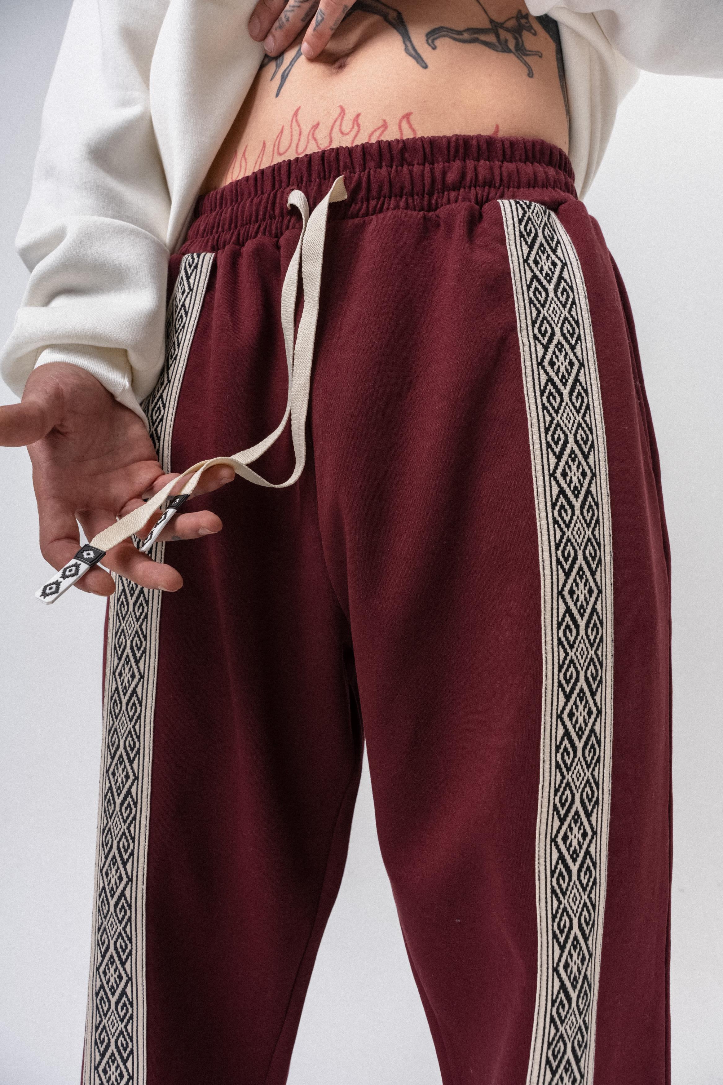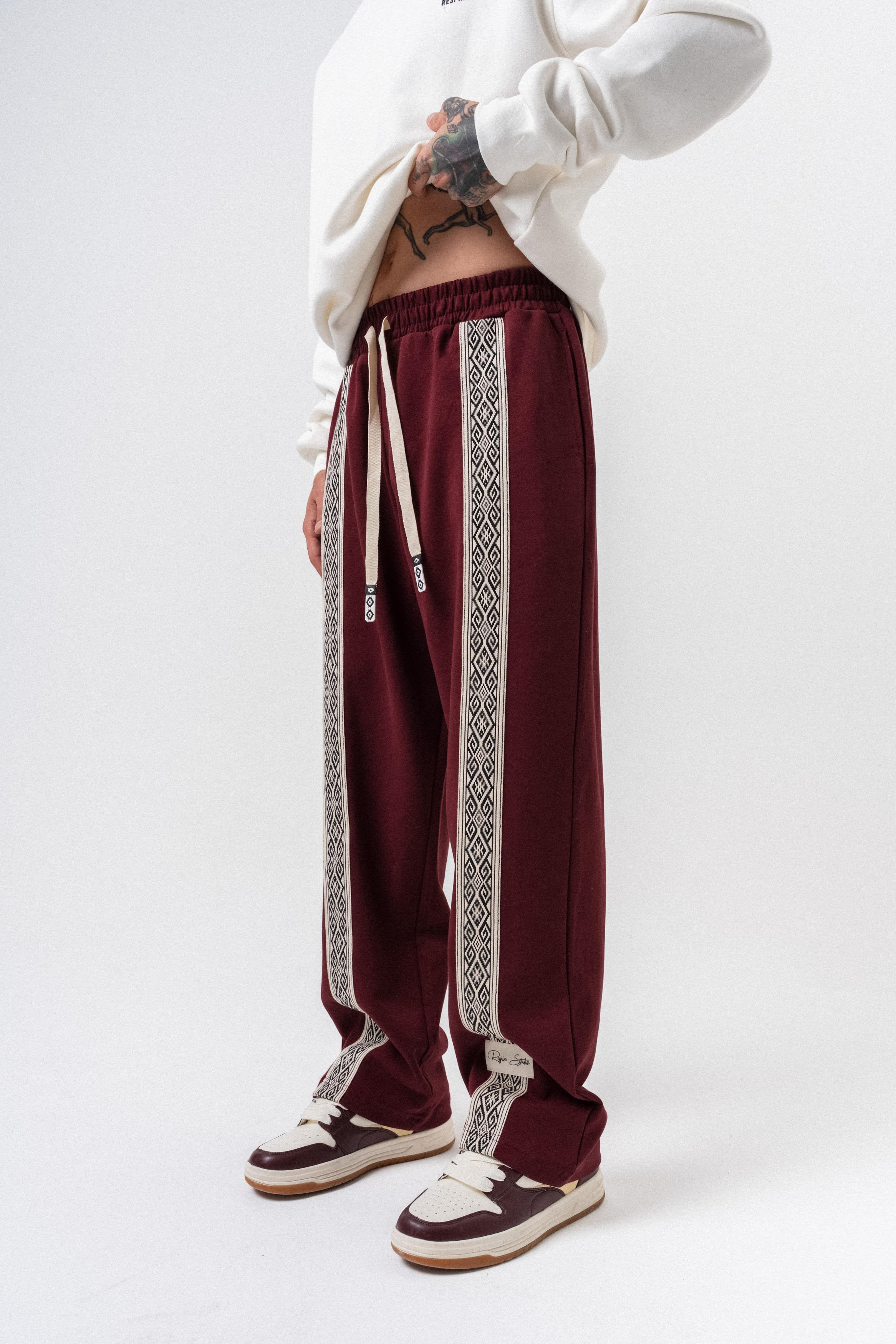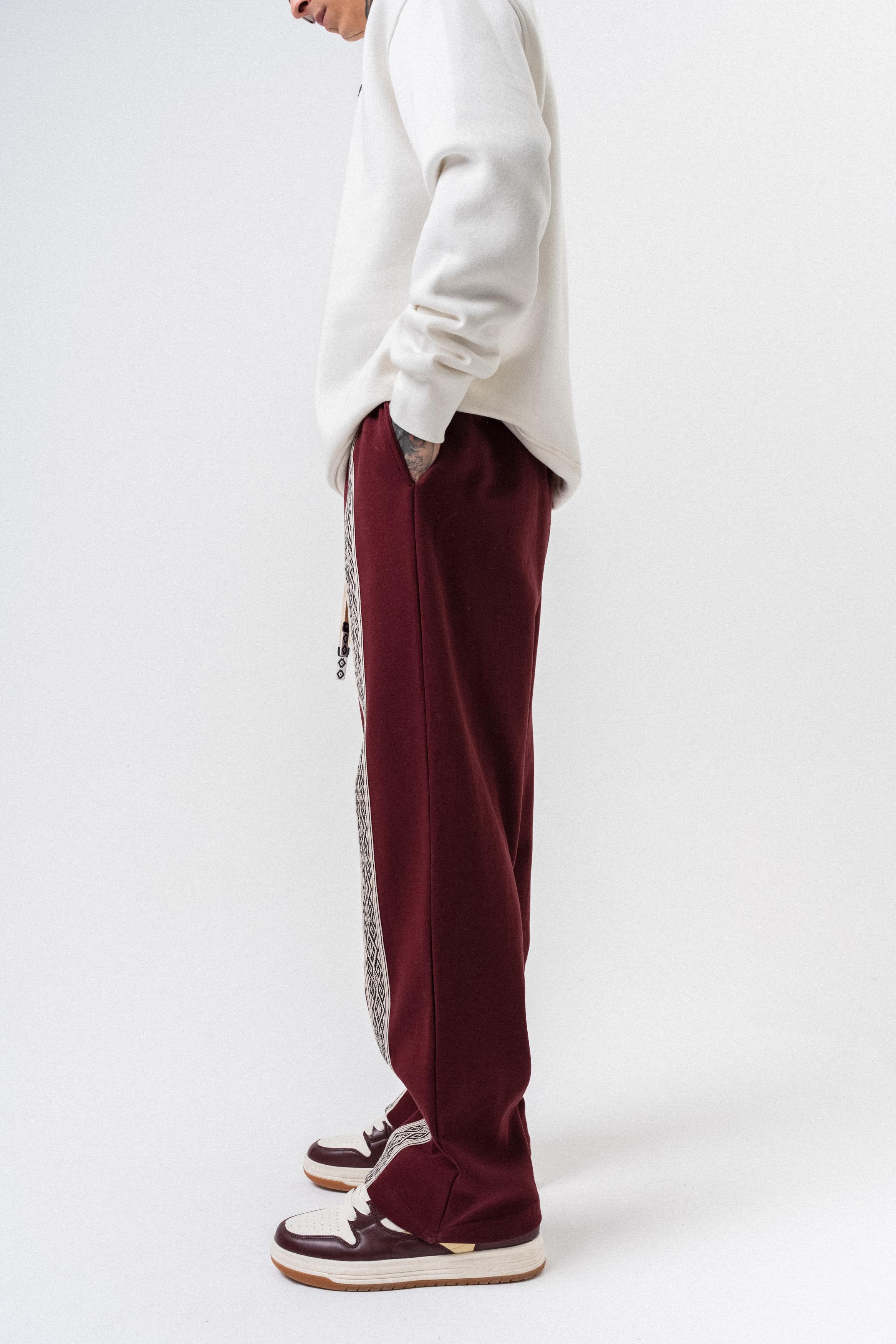 Erkek Etnik Şerit Detaylı Kışlık Doubleface Baggy Eşofman Altı Bordo (56261000Bordo)
