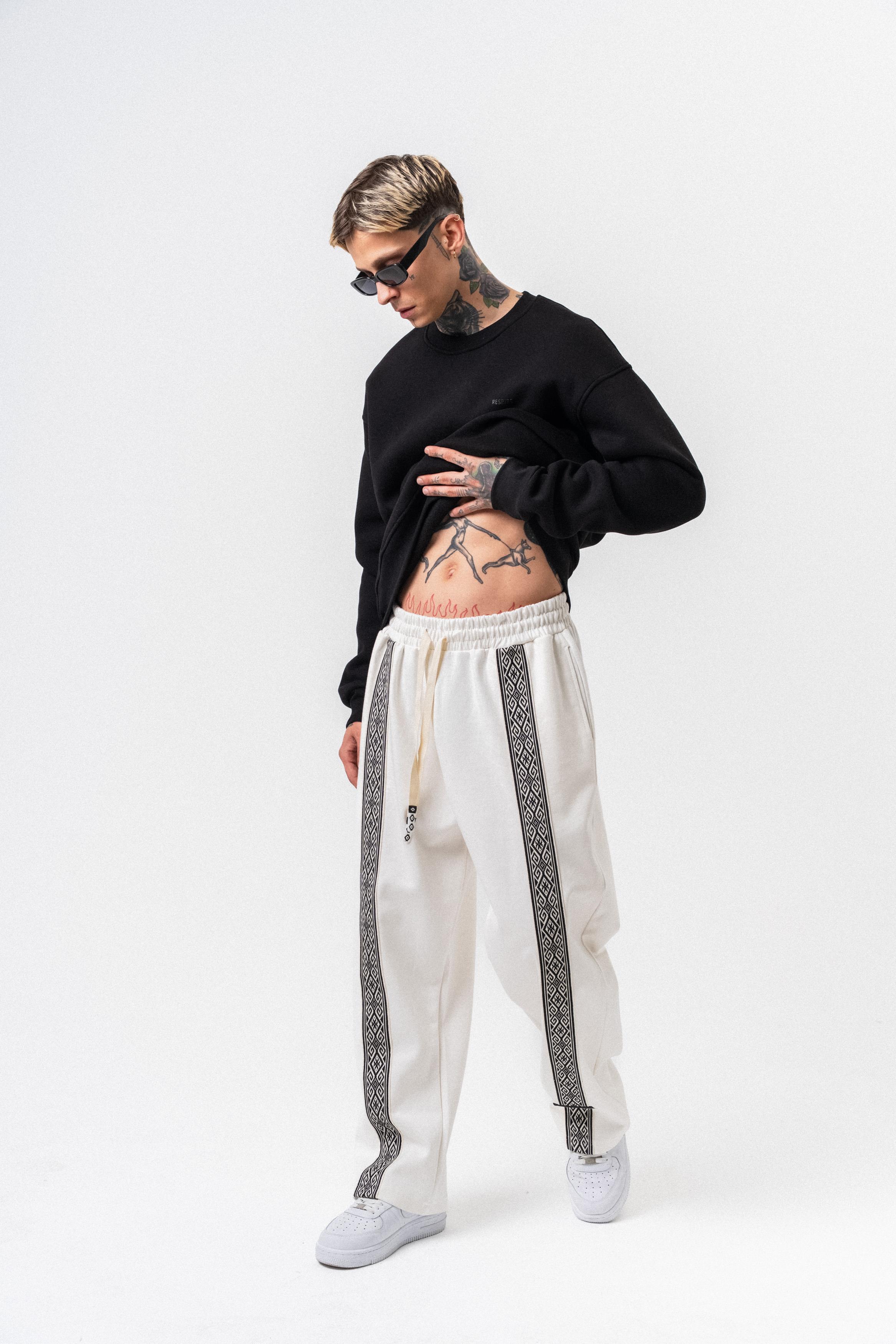 Erkek Etnik Şerit Detaylı Kışlık Doubleface Baggy Eşofman Altı Ekru (56261000Ekru)