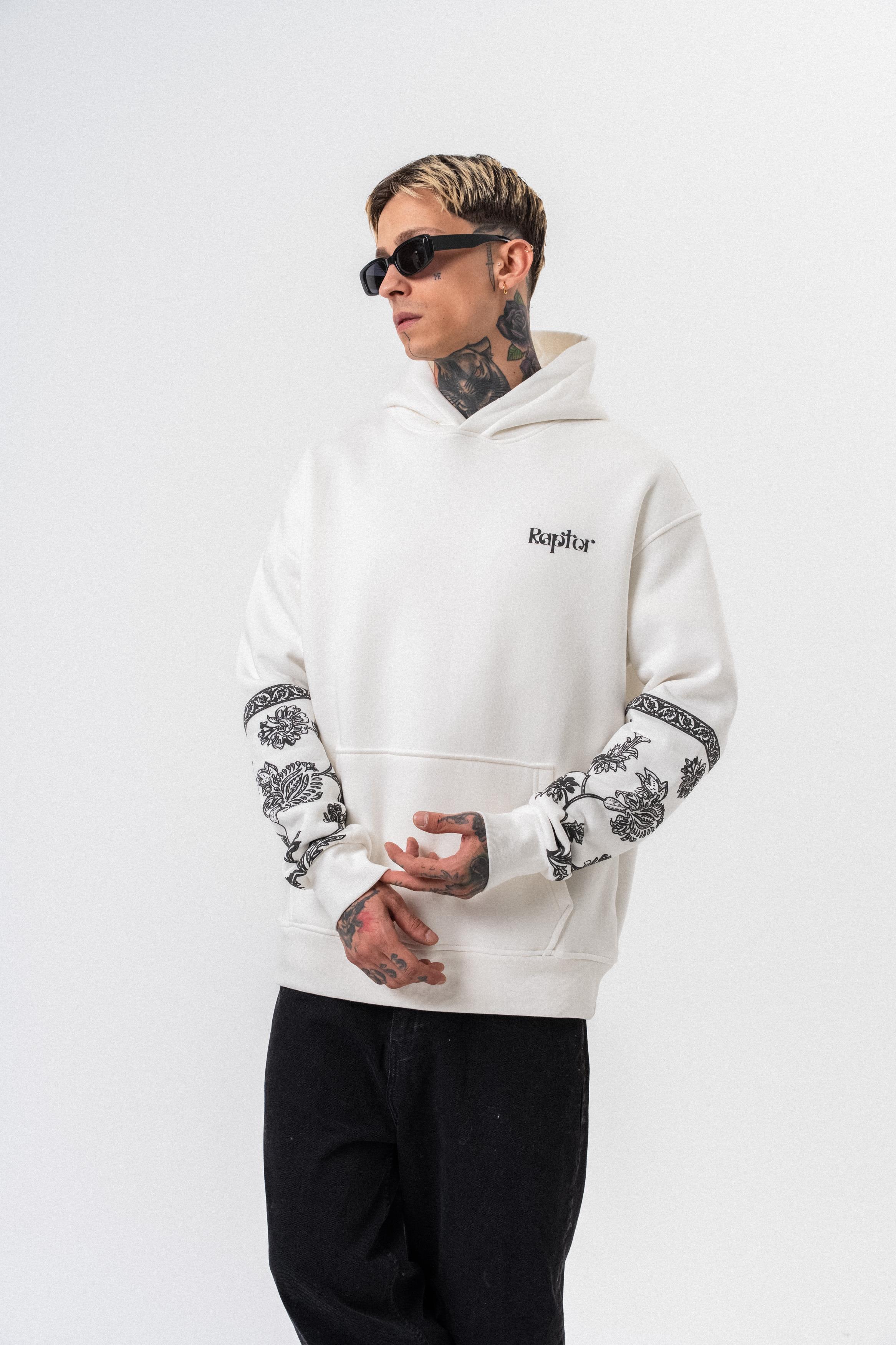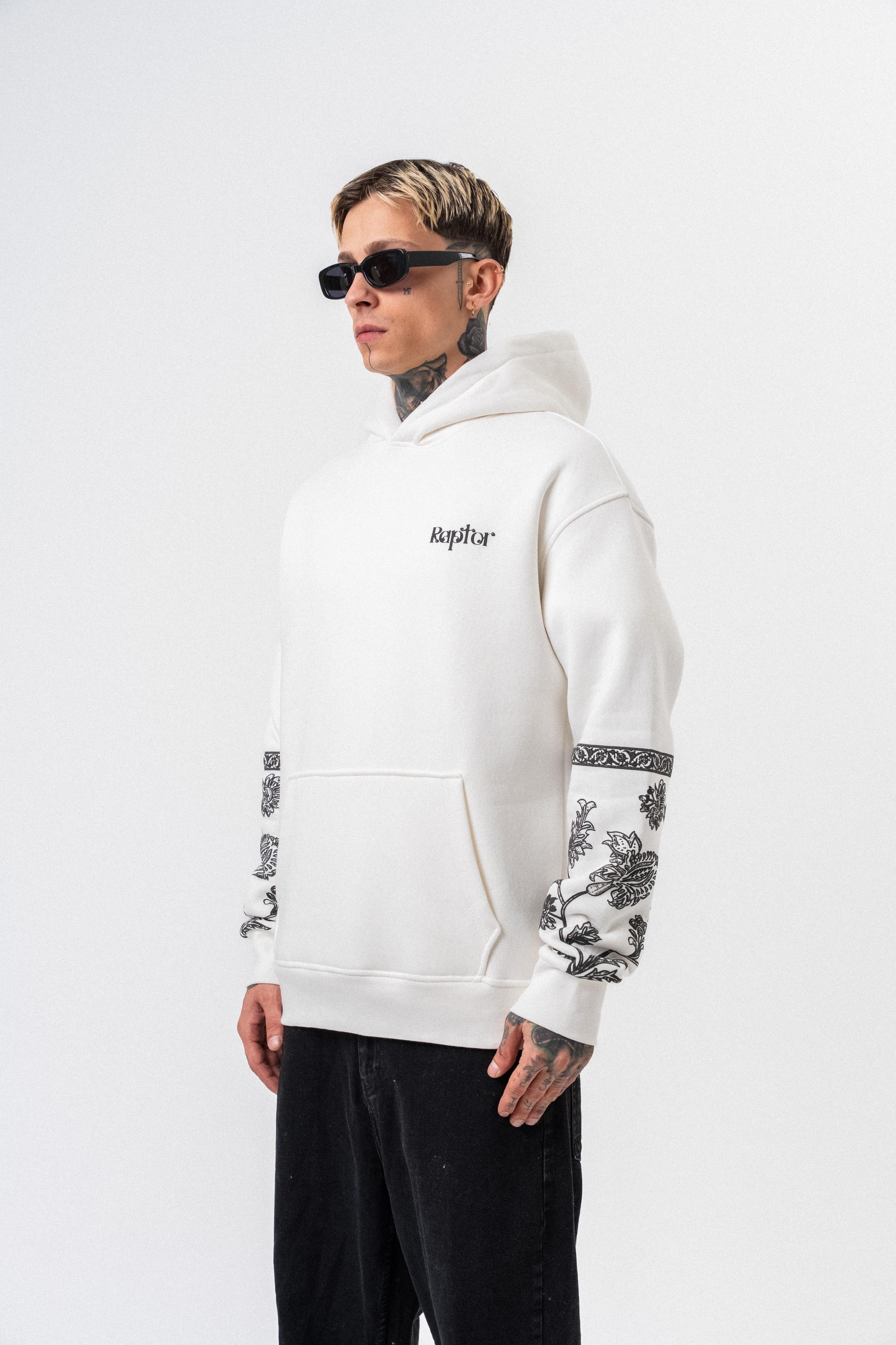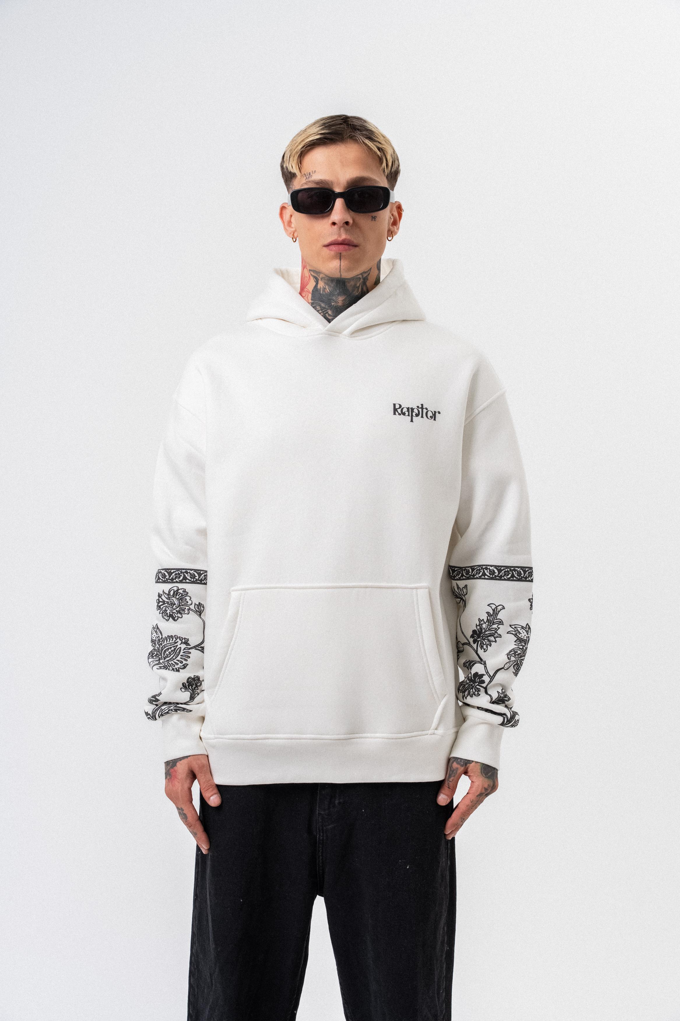 Erkek Raptor Baskılı Kapüşonlu Oversize Hoodie Ekru (56261035Ekru)