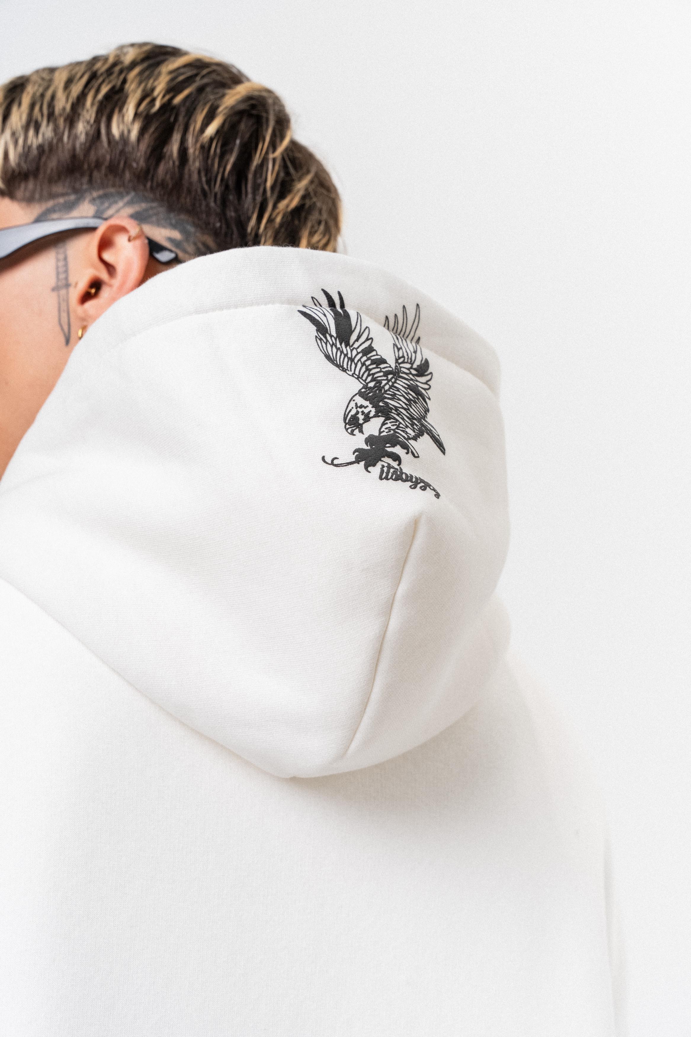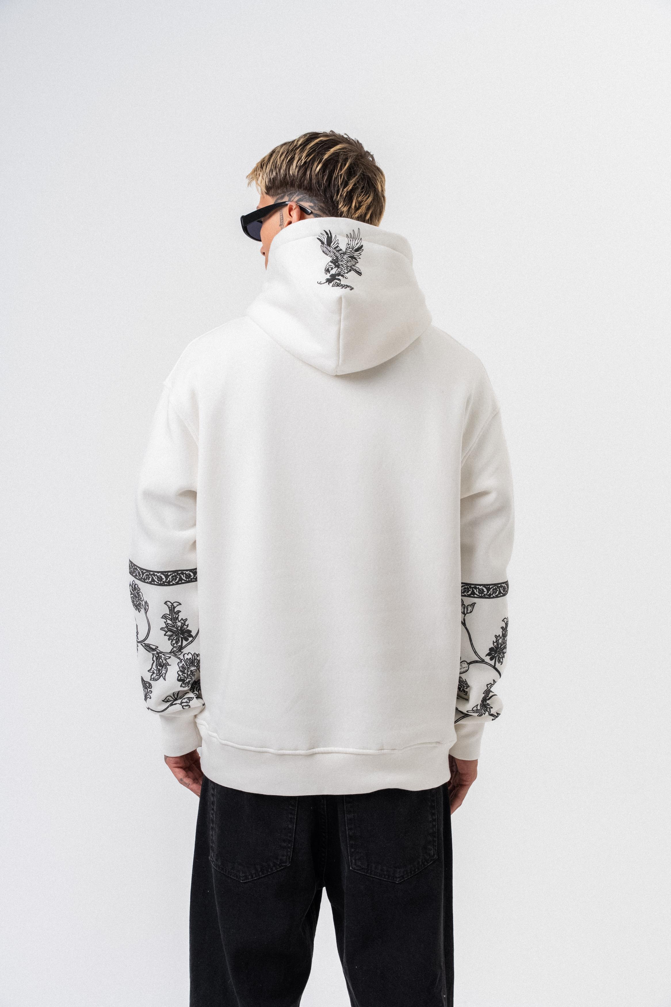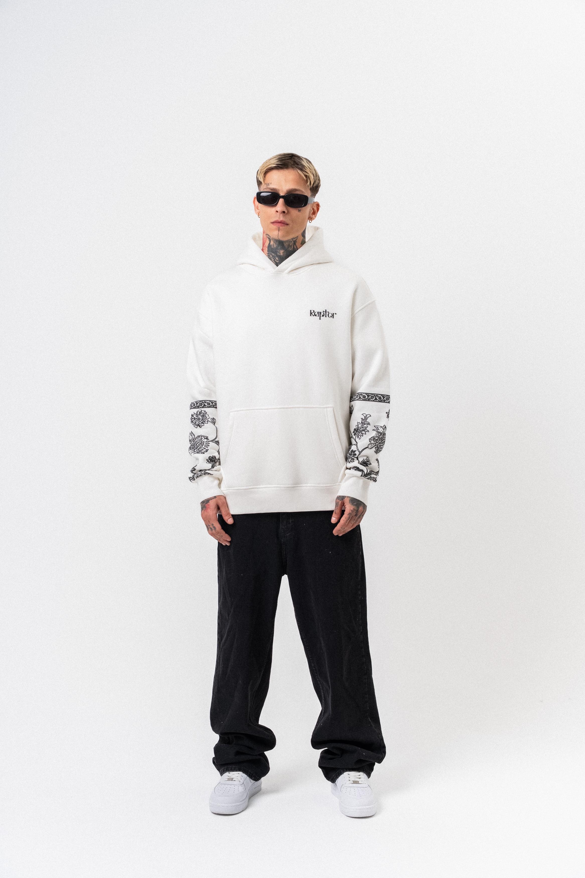 Erkek Raptor Baskılı Kapüşonlu Oversize Hoodie Ekru (56261035Ekru)