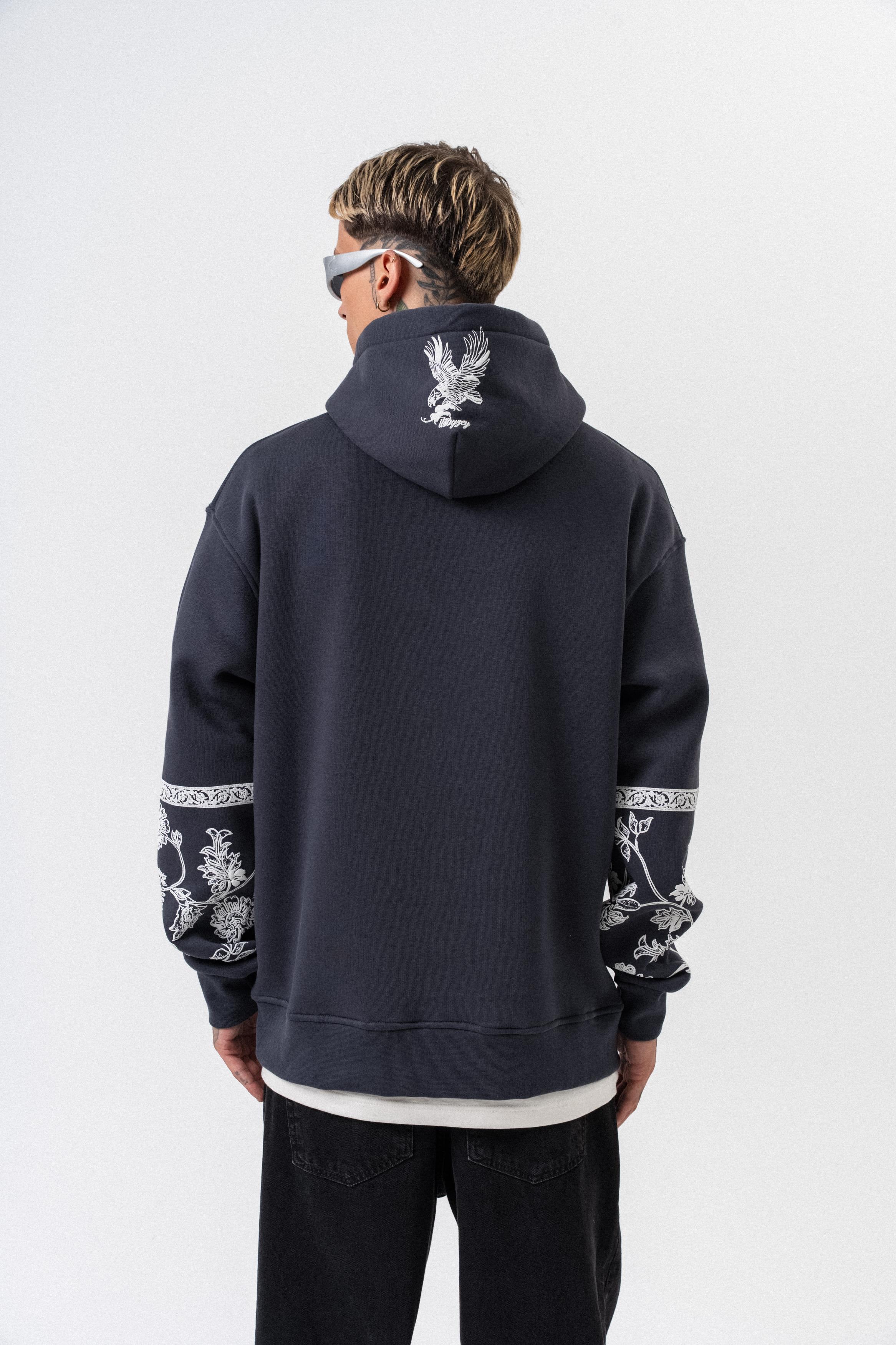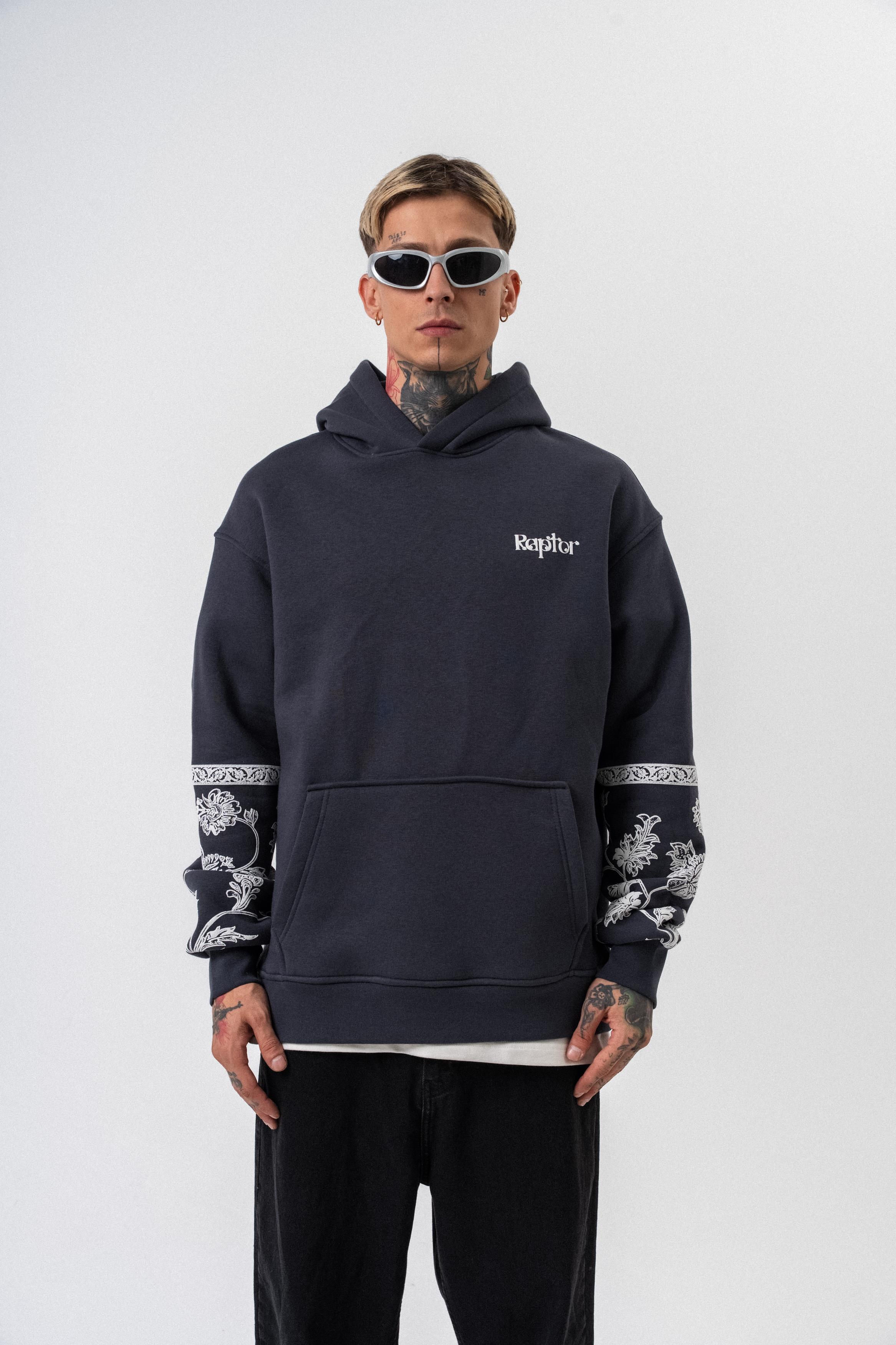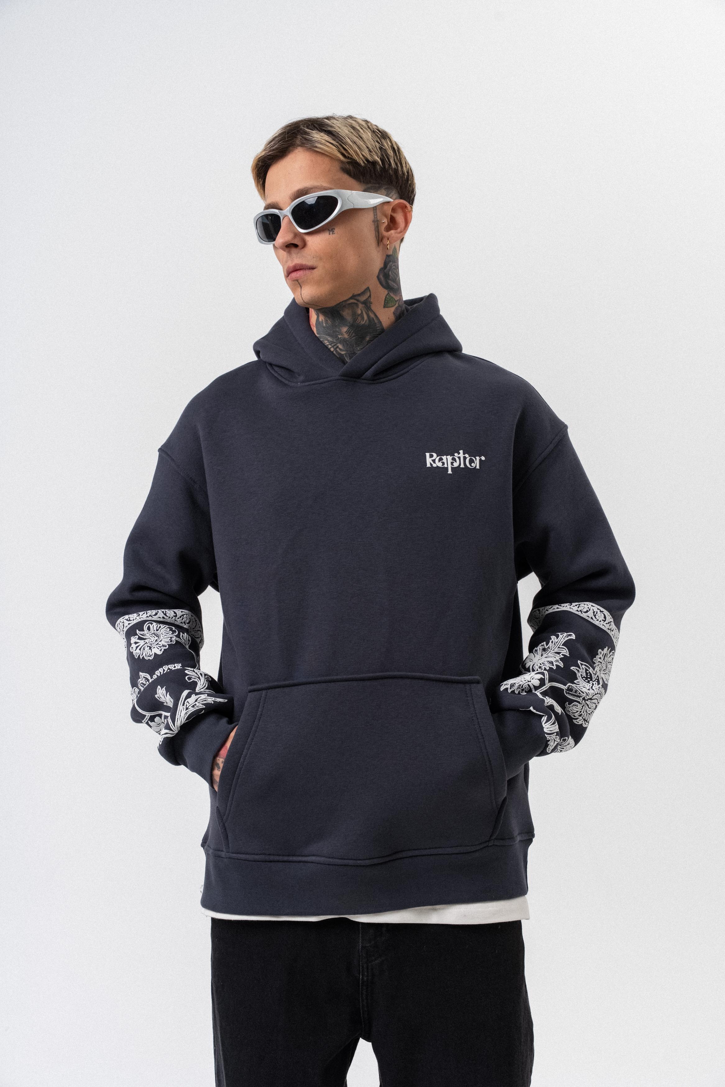 Erkek Raptor Baskılı Kapüşonlu Oversize Hoodie Füme (56261035Füme)