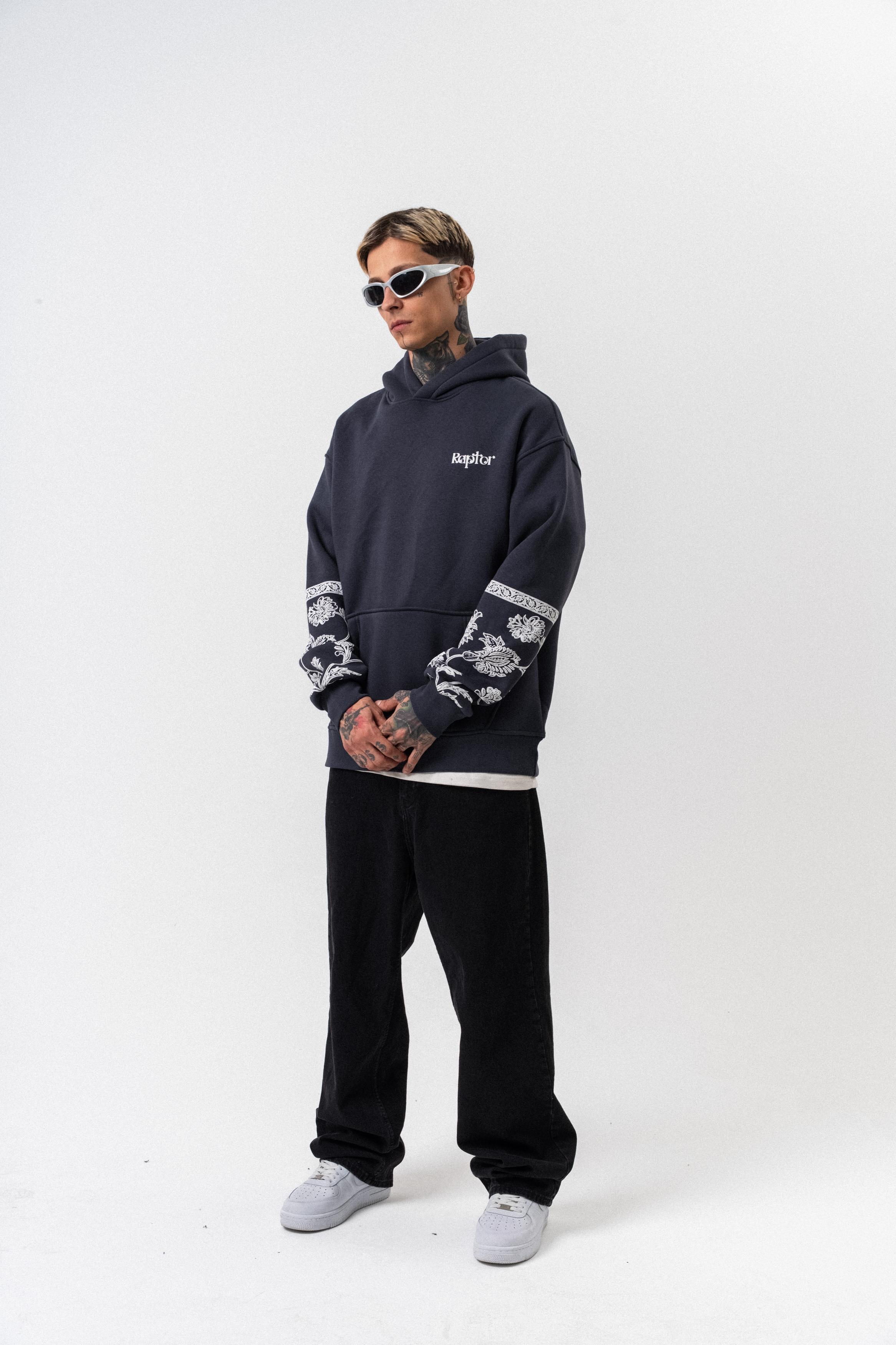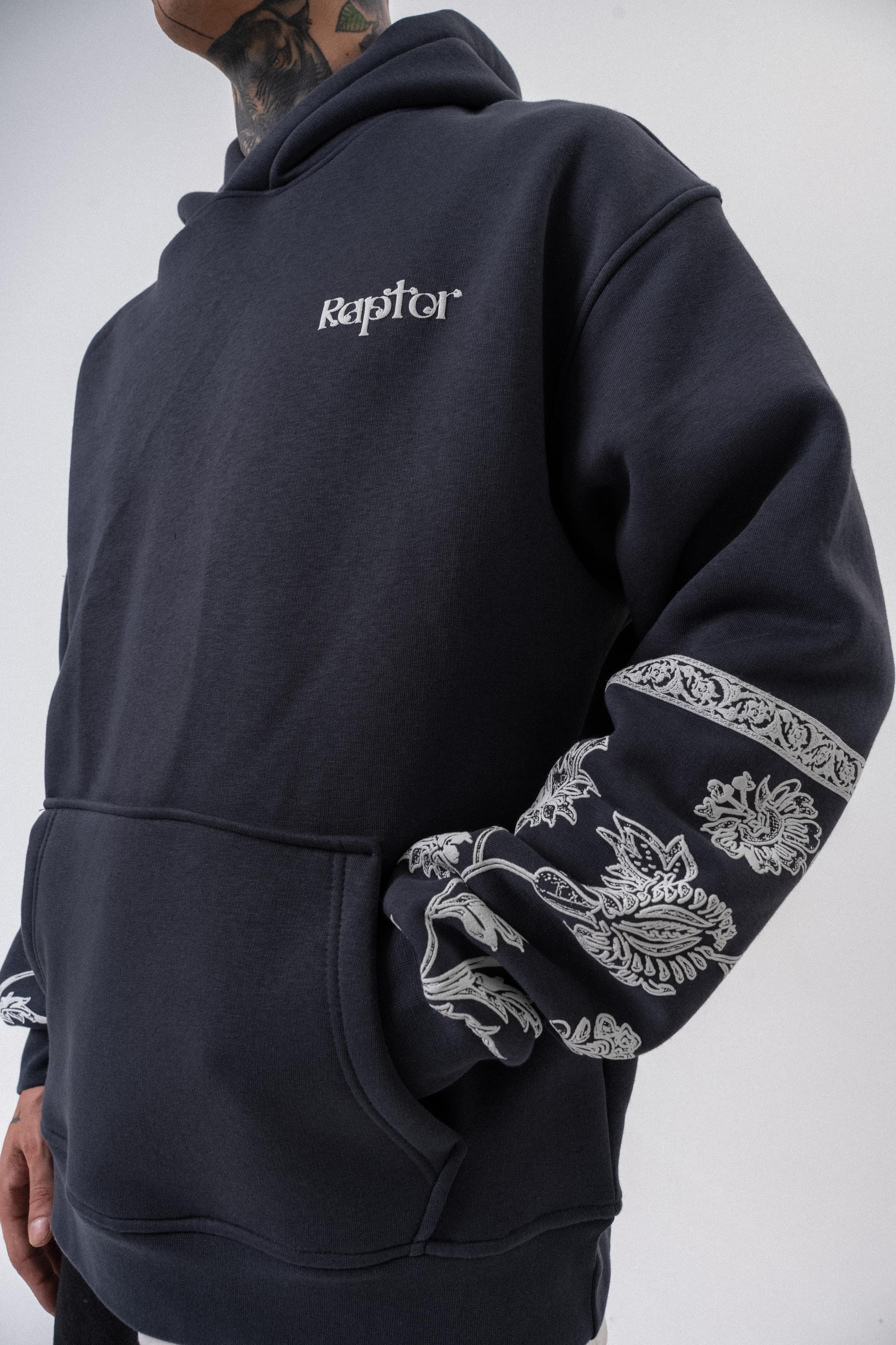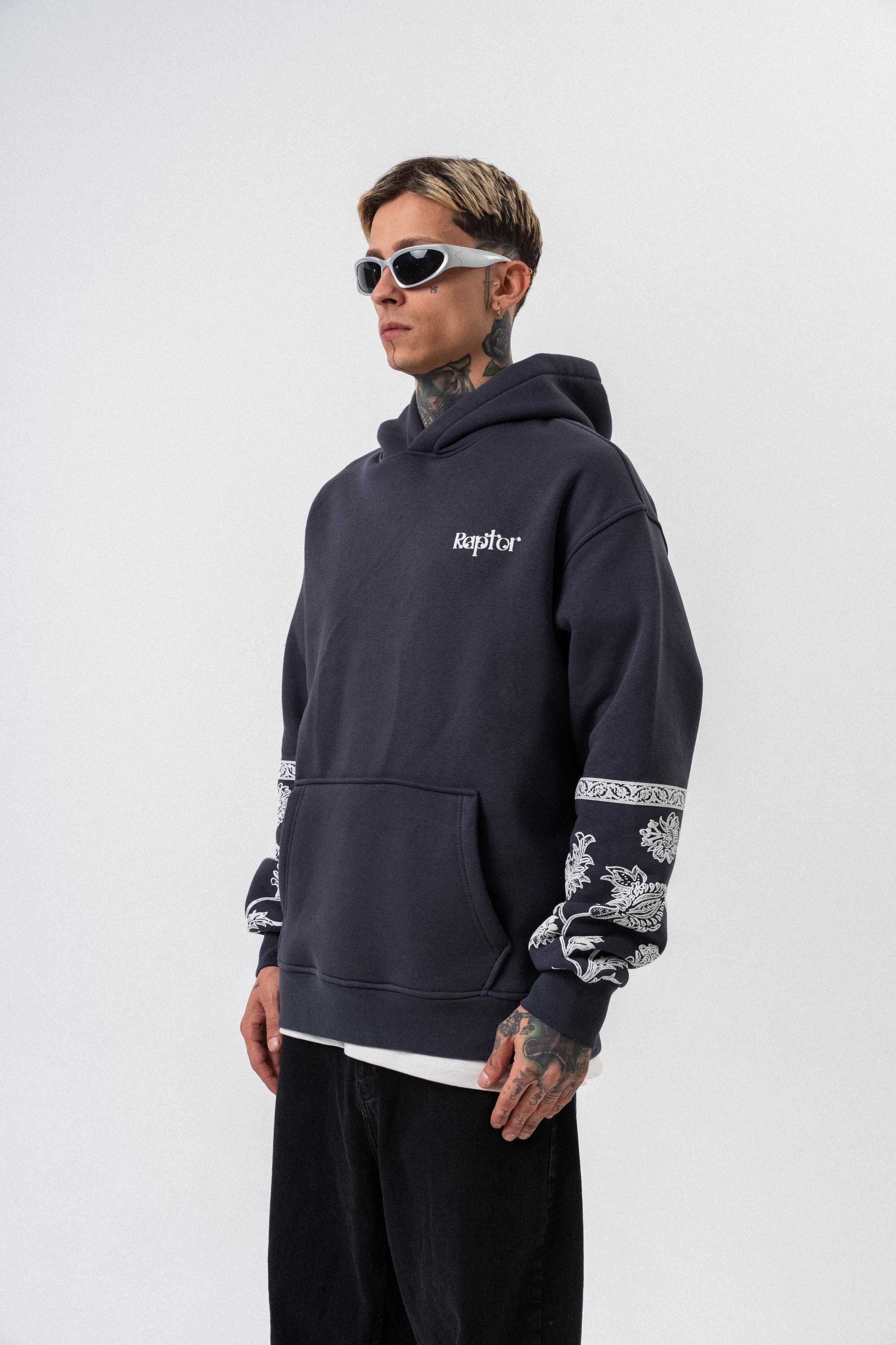 Erkek Raptor Baskılı Kapüşonlu Oversize Hoodie Füme (56261035Füme)