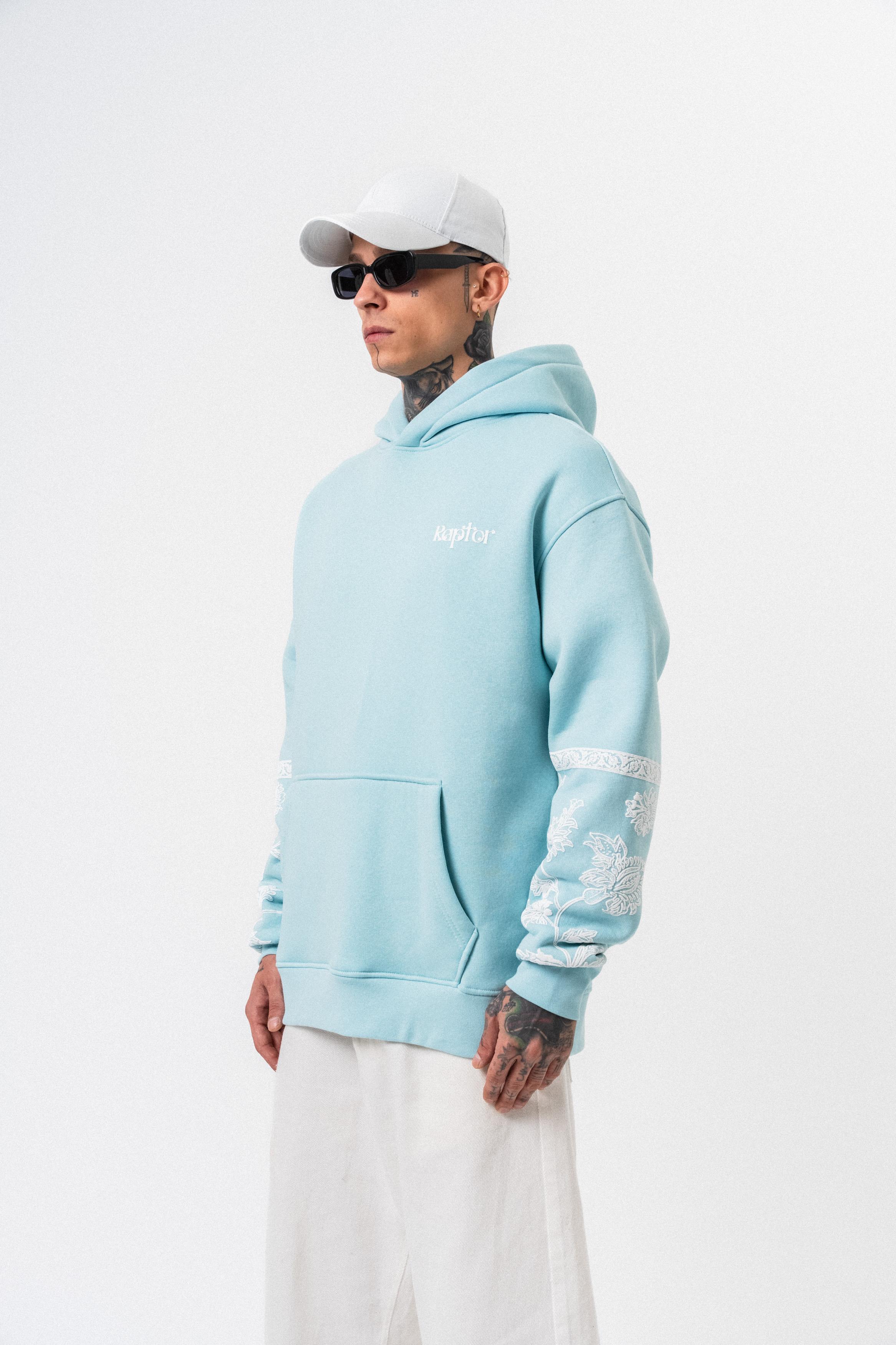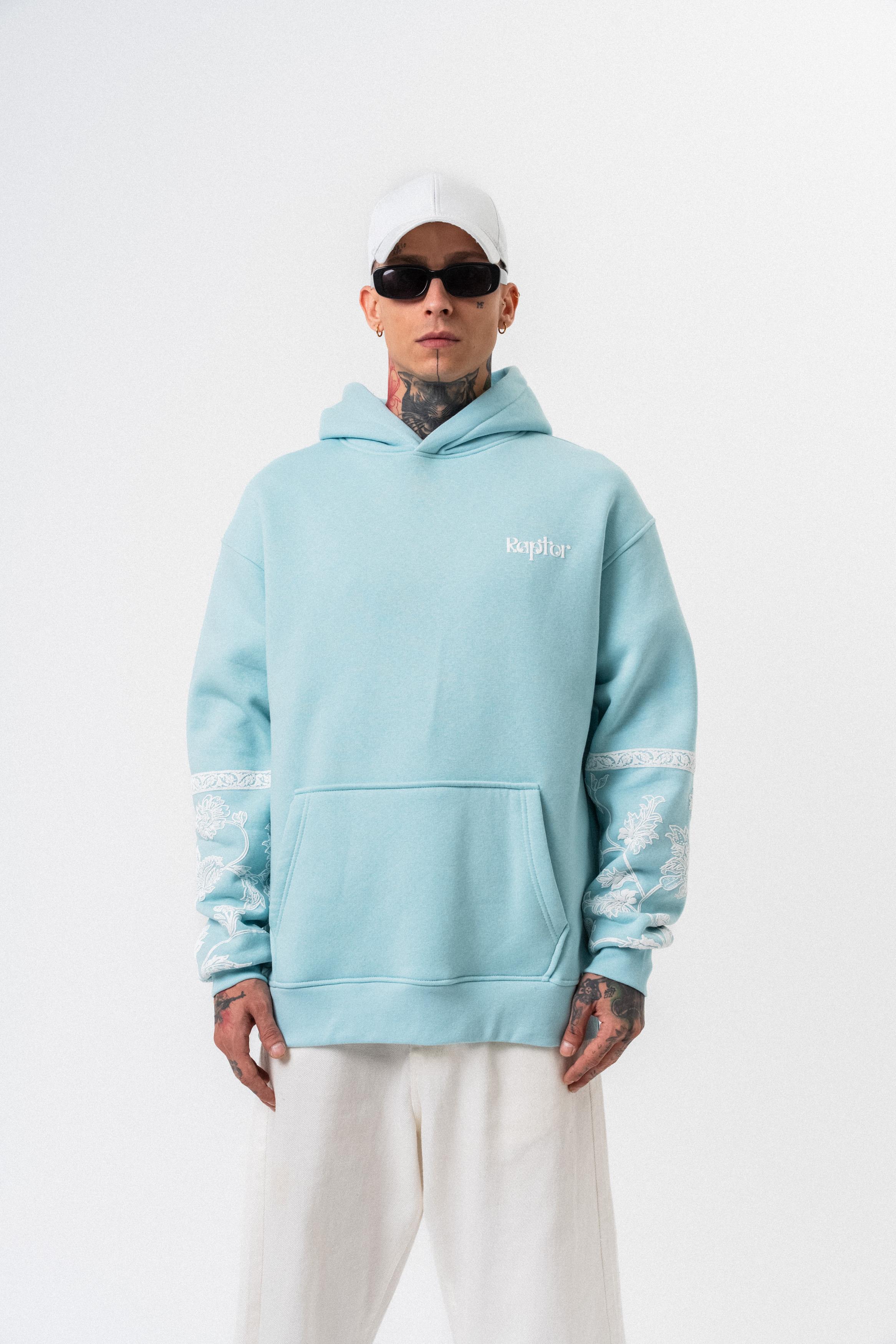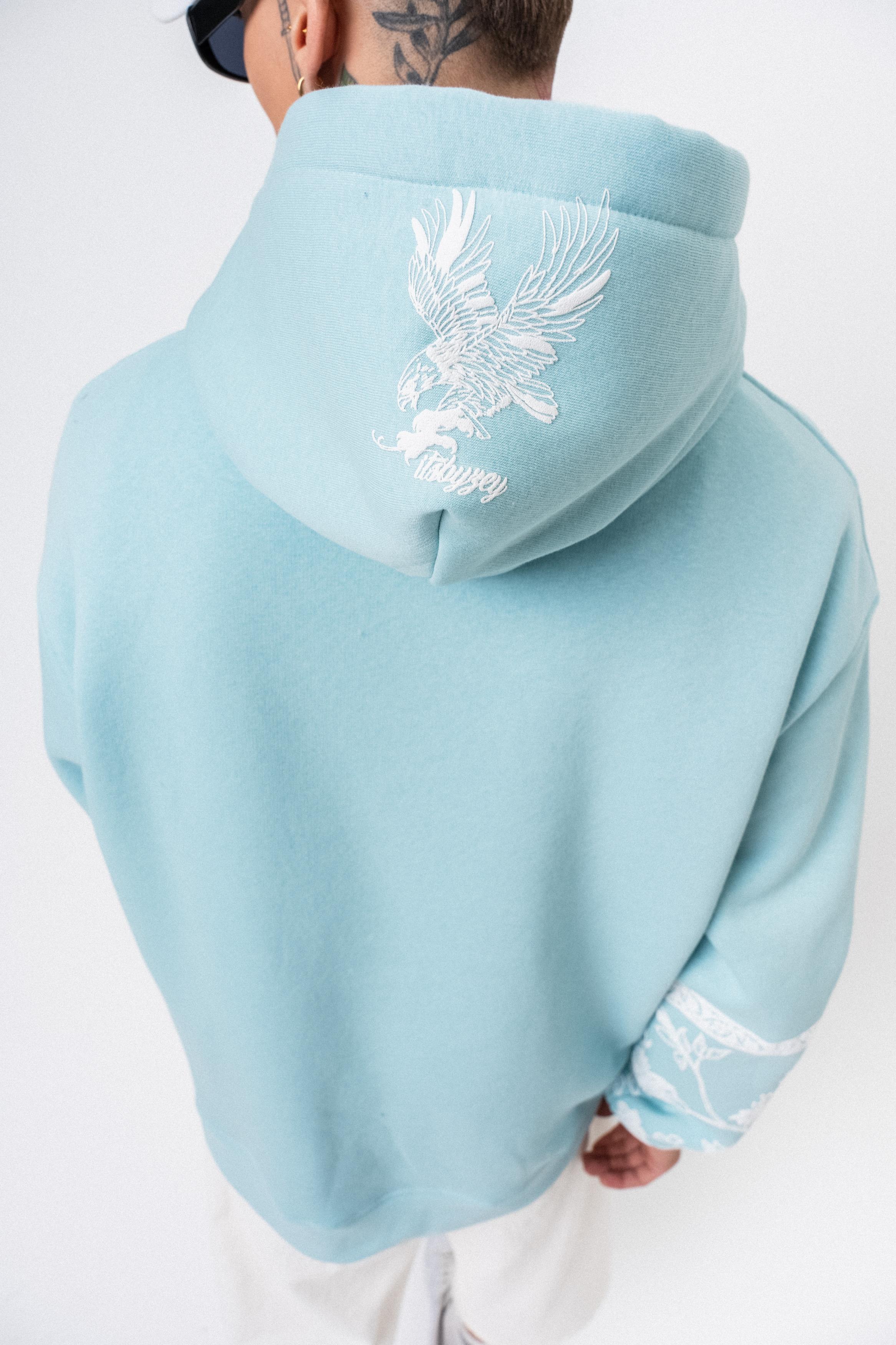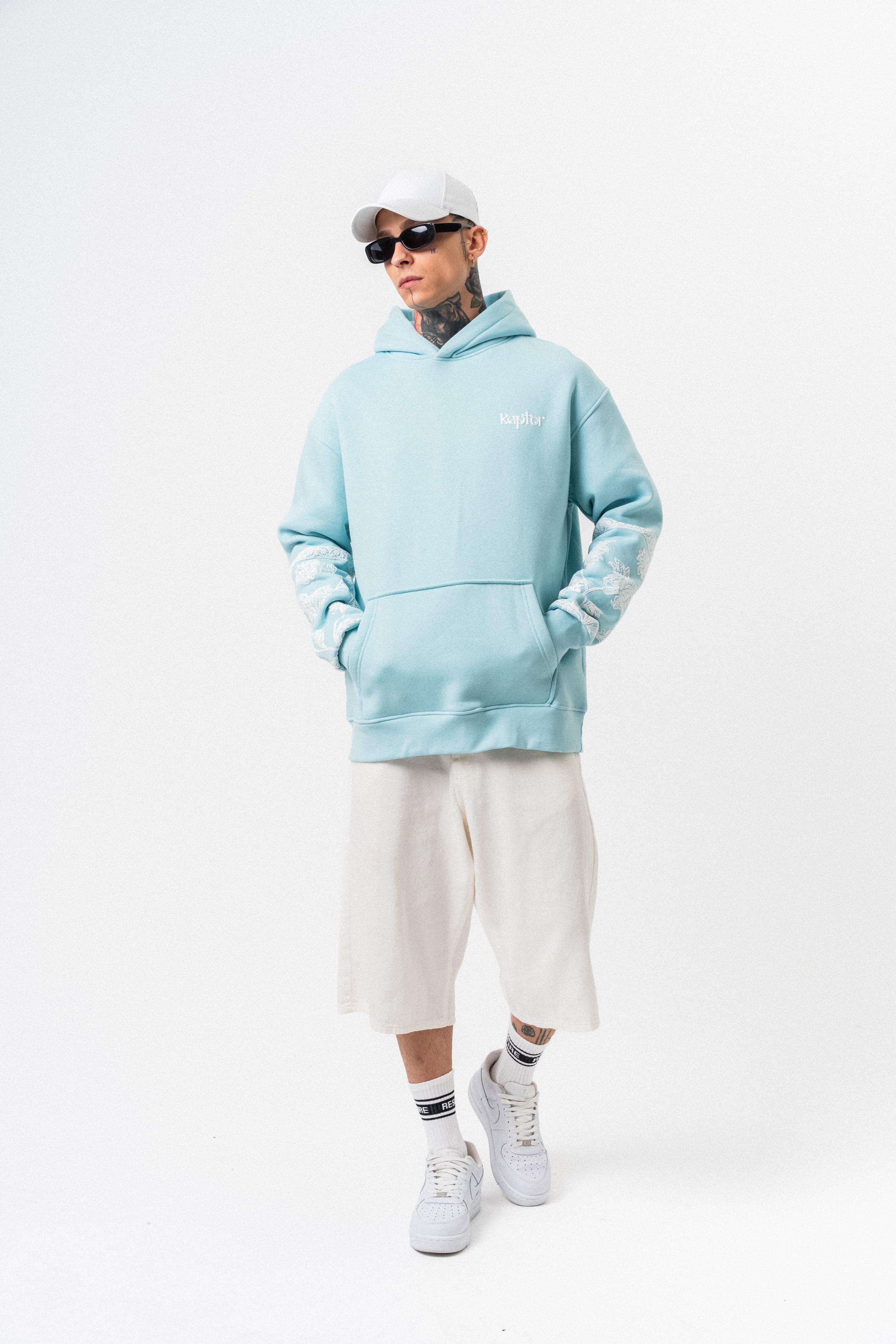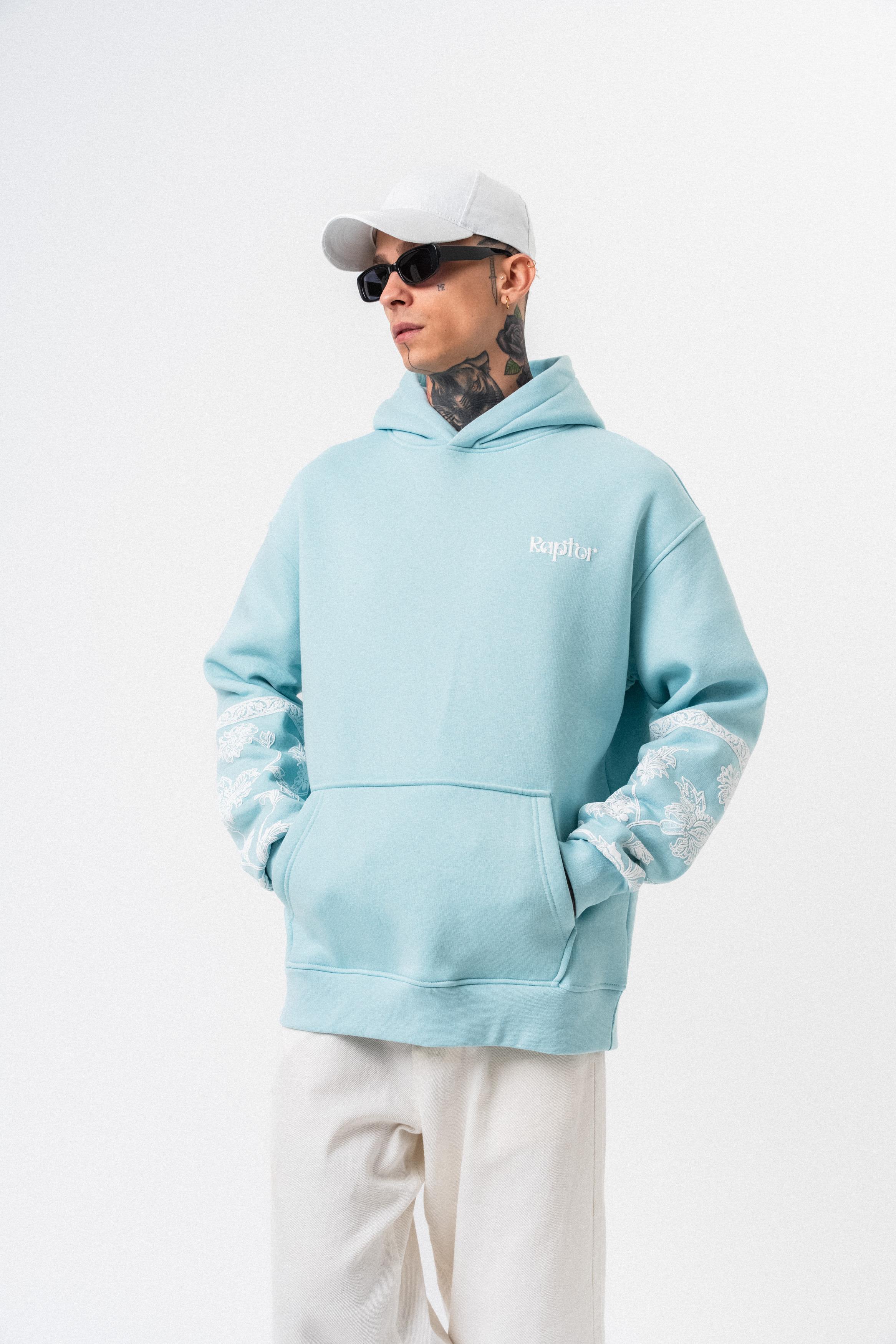 Erkek Raptor Baskılı Kapüşonlu Oversize Hoodie Mavi (56261035Mavi)