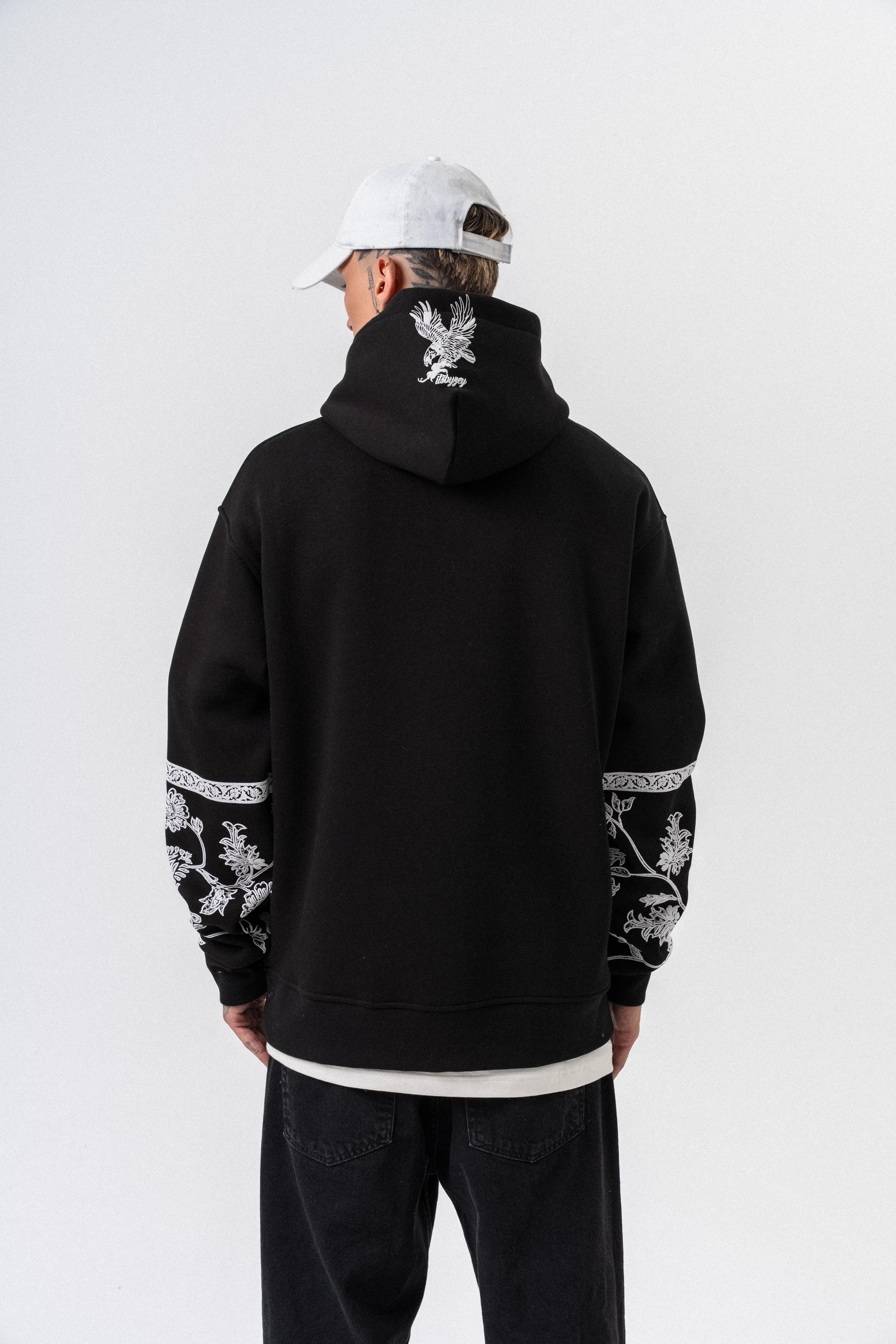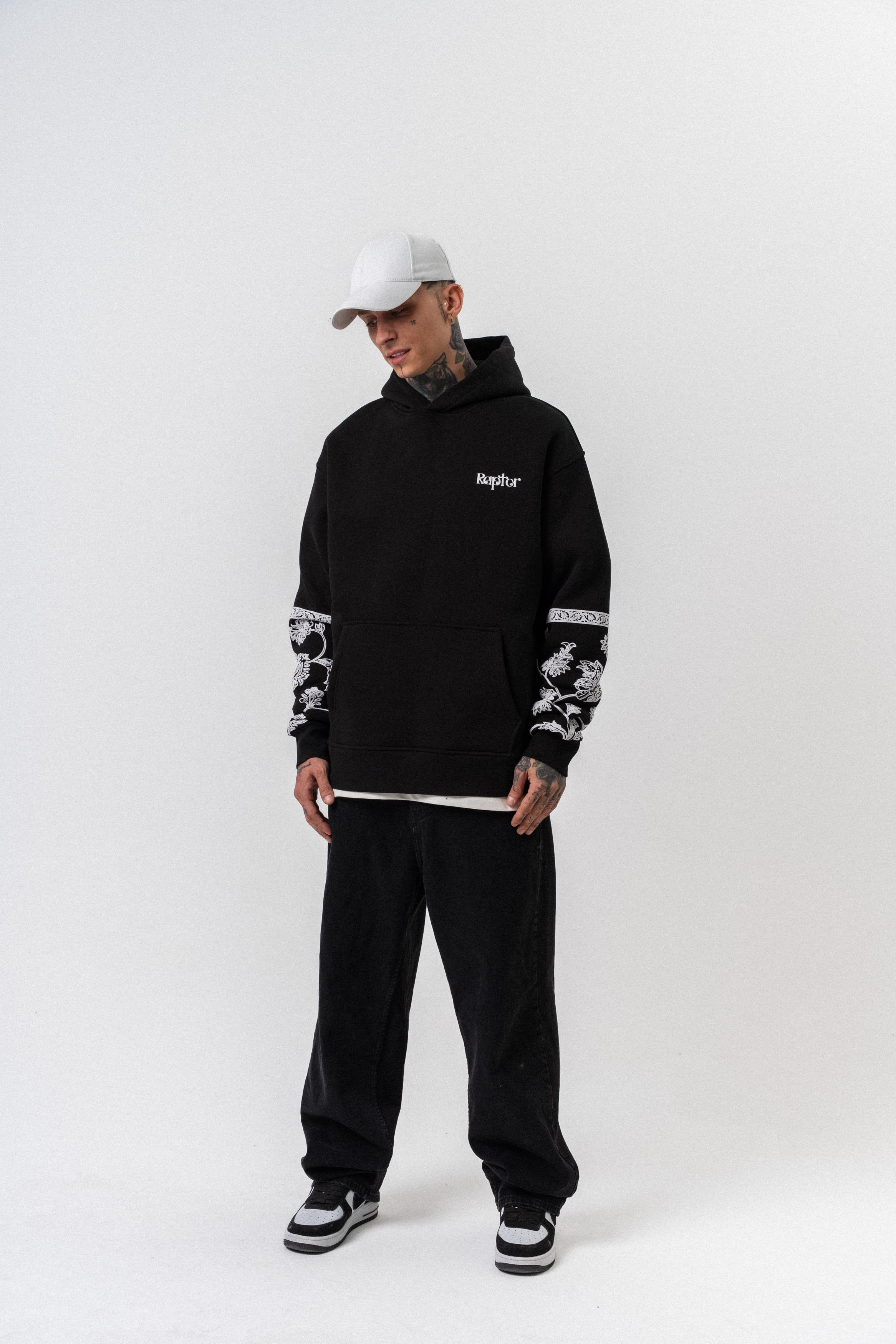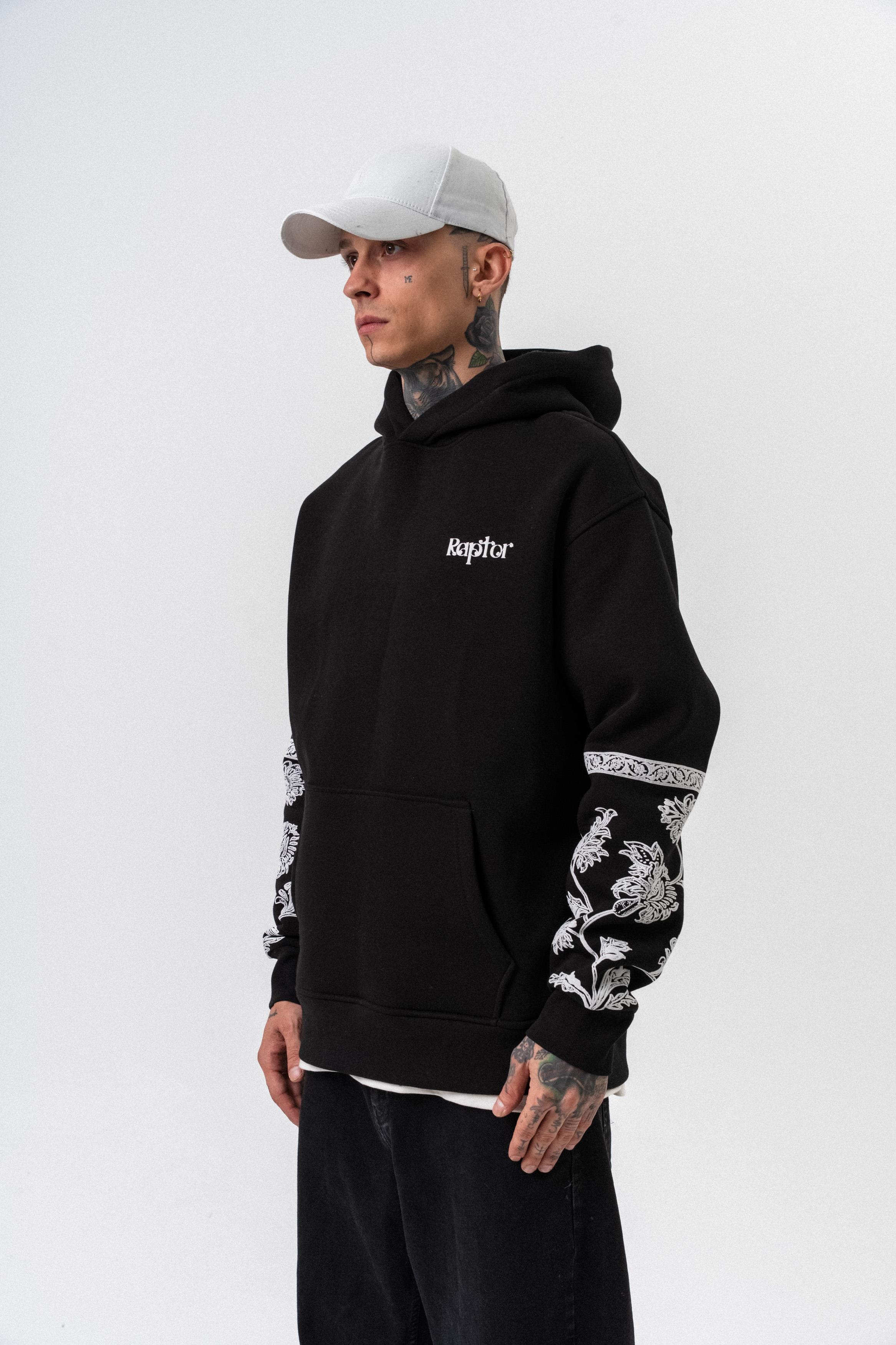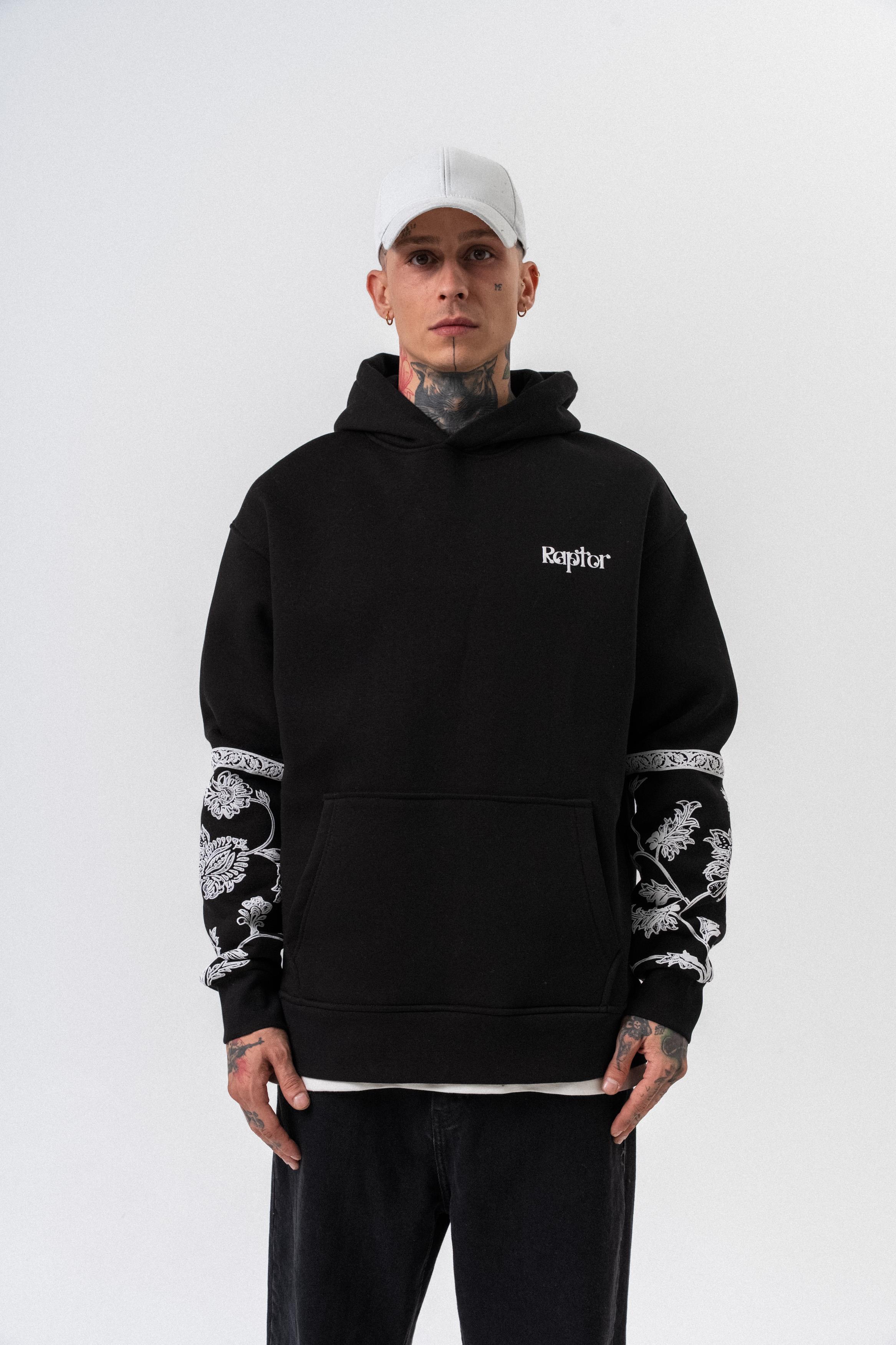 Erkek Raptor Baskılı Kapüşonlu Oversize Hoodie Siyah (56261035Siyah)