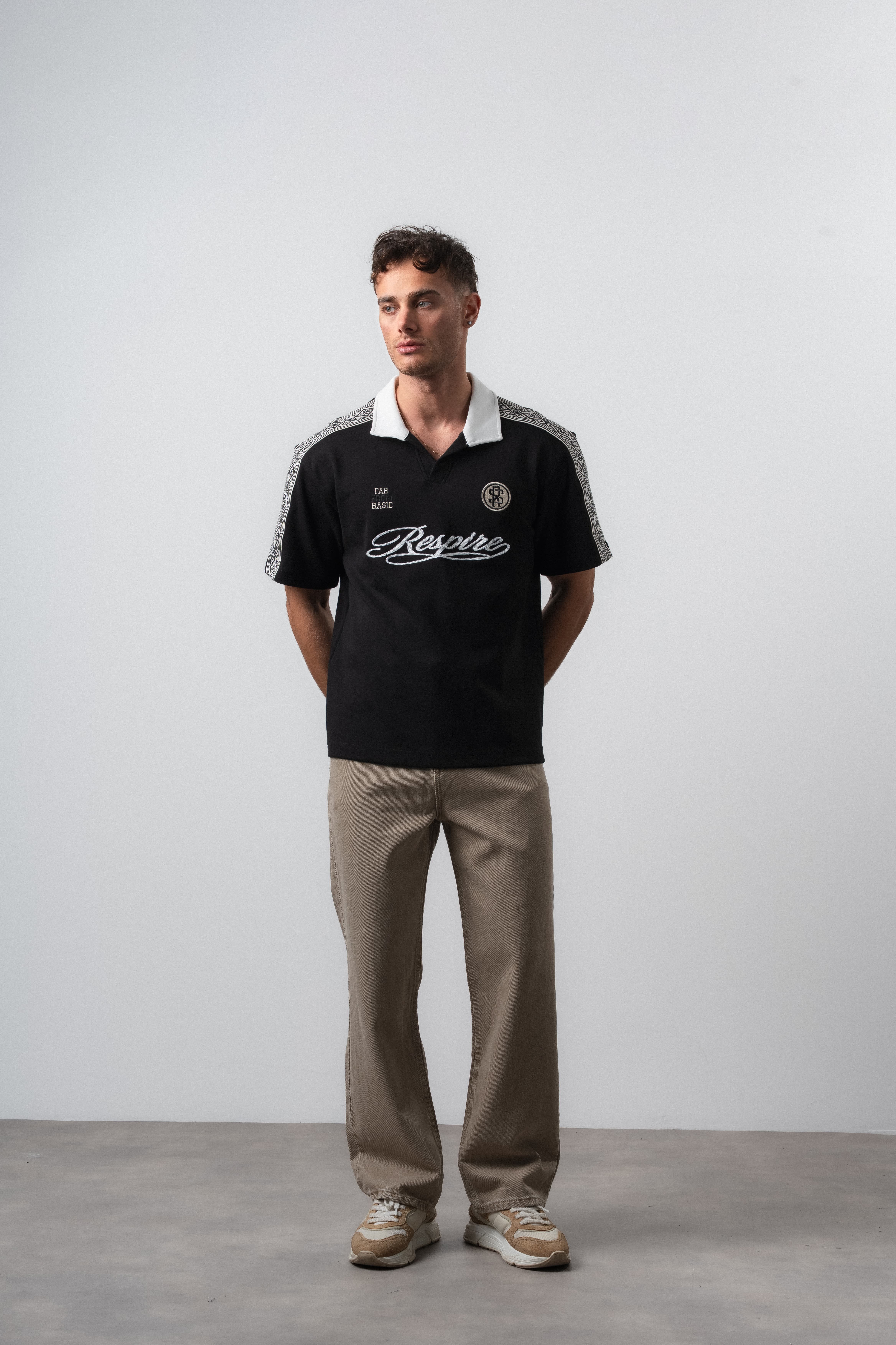 Respire retro temalı regular fit polo yaka forma t-shirt, maç heyecanını her an canlı tutar. Rahat kesimiyle tempoya ayak uydururken, polo yaka detayıyla sahadaki mücadeleyi stiline güçlü bir şekilde yansıtır.
