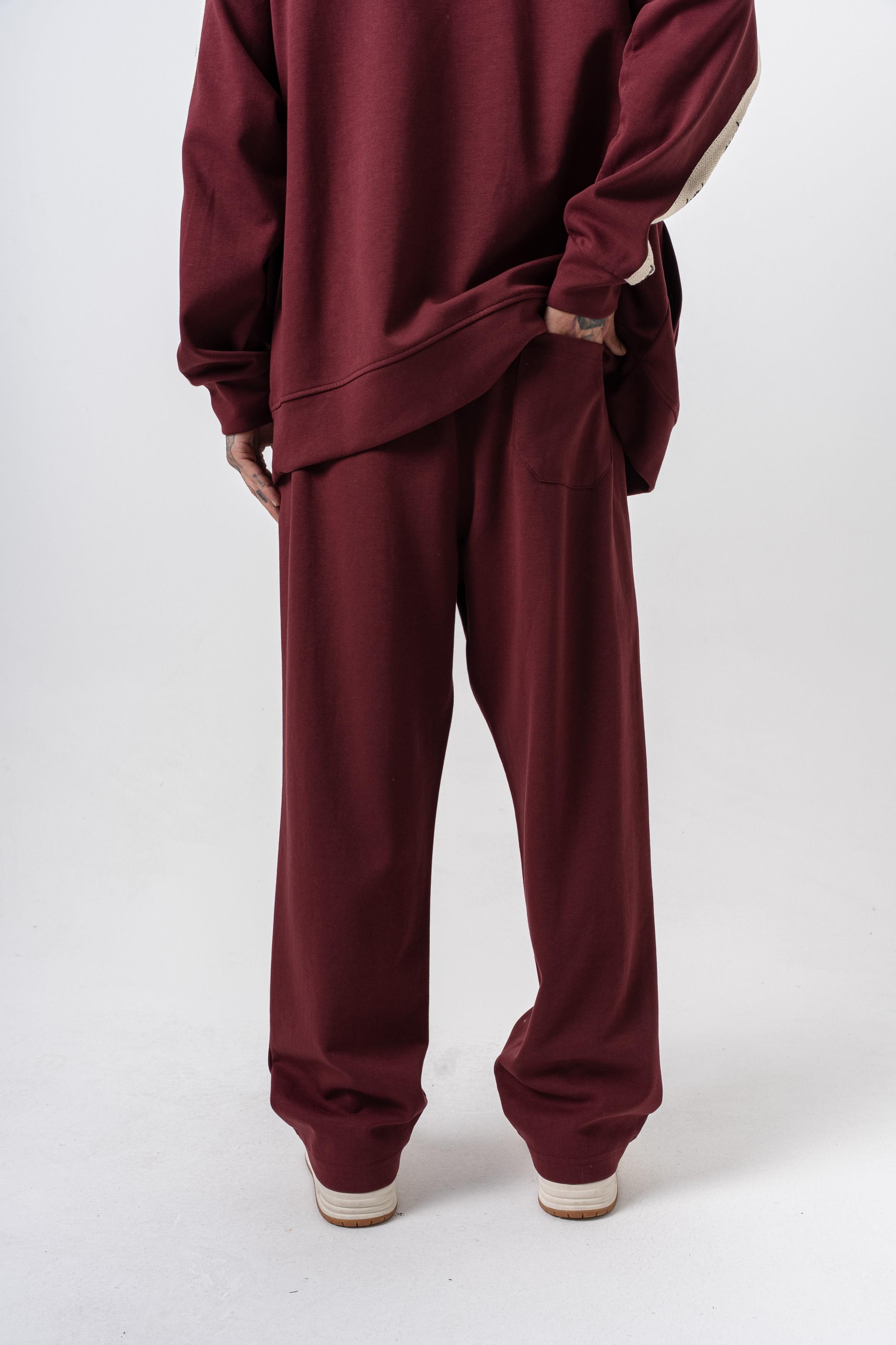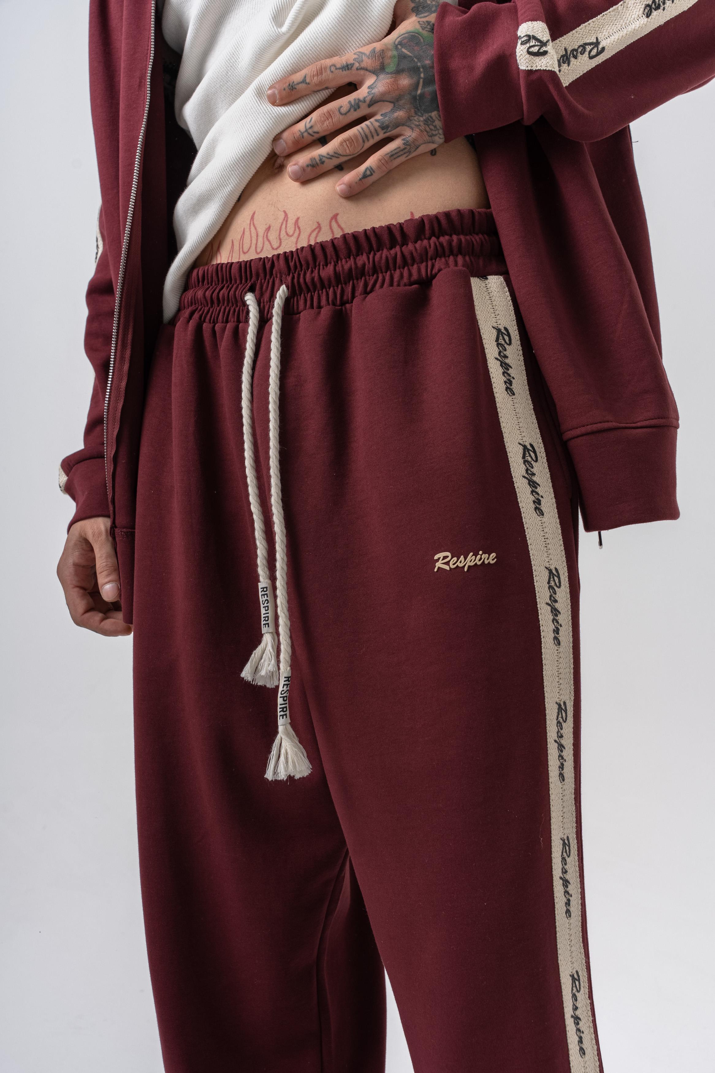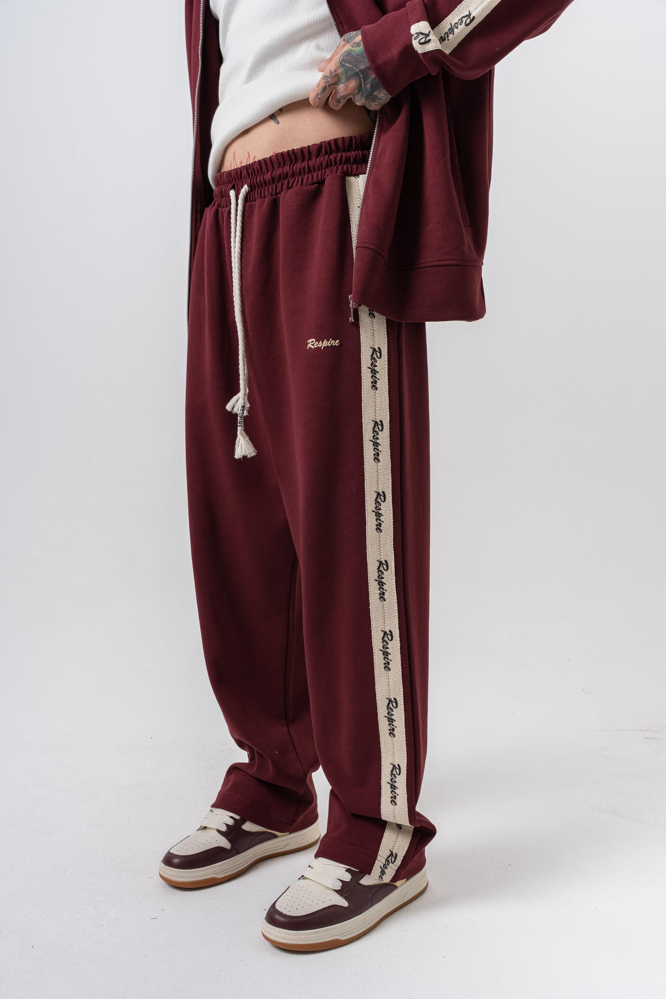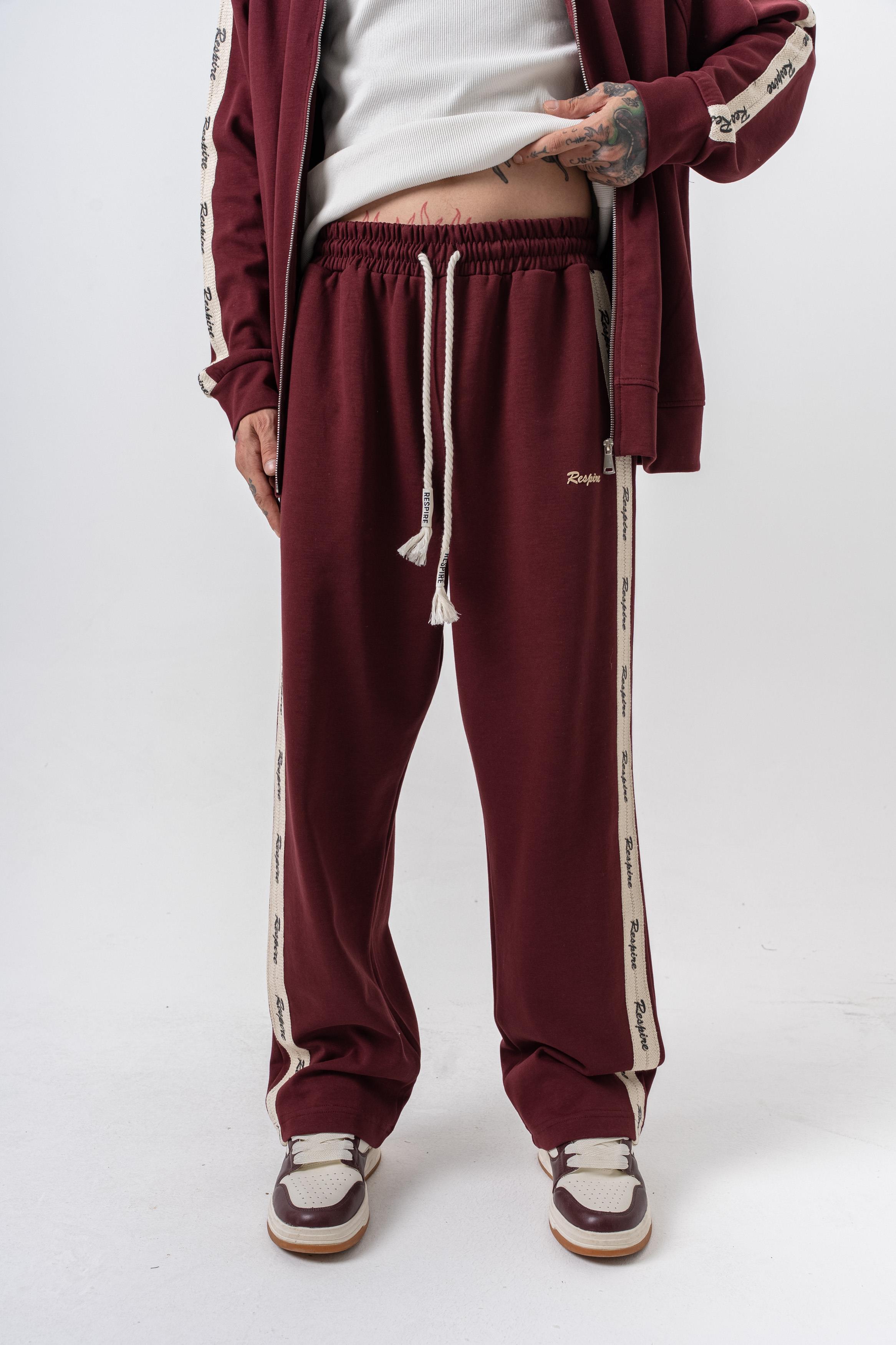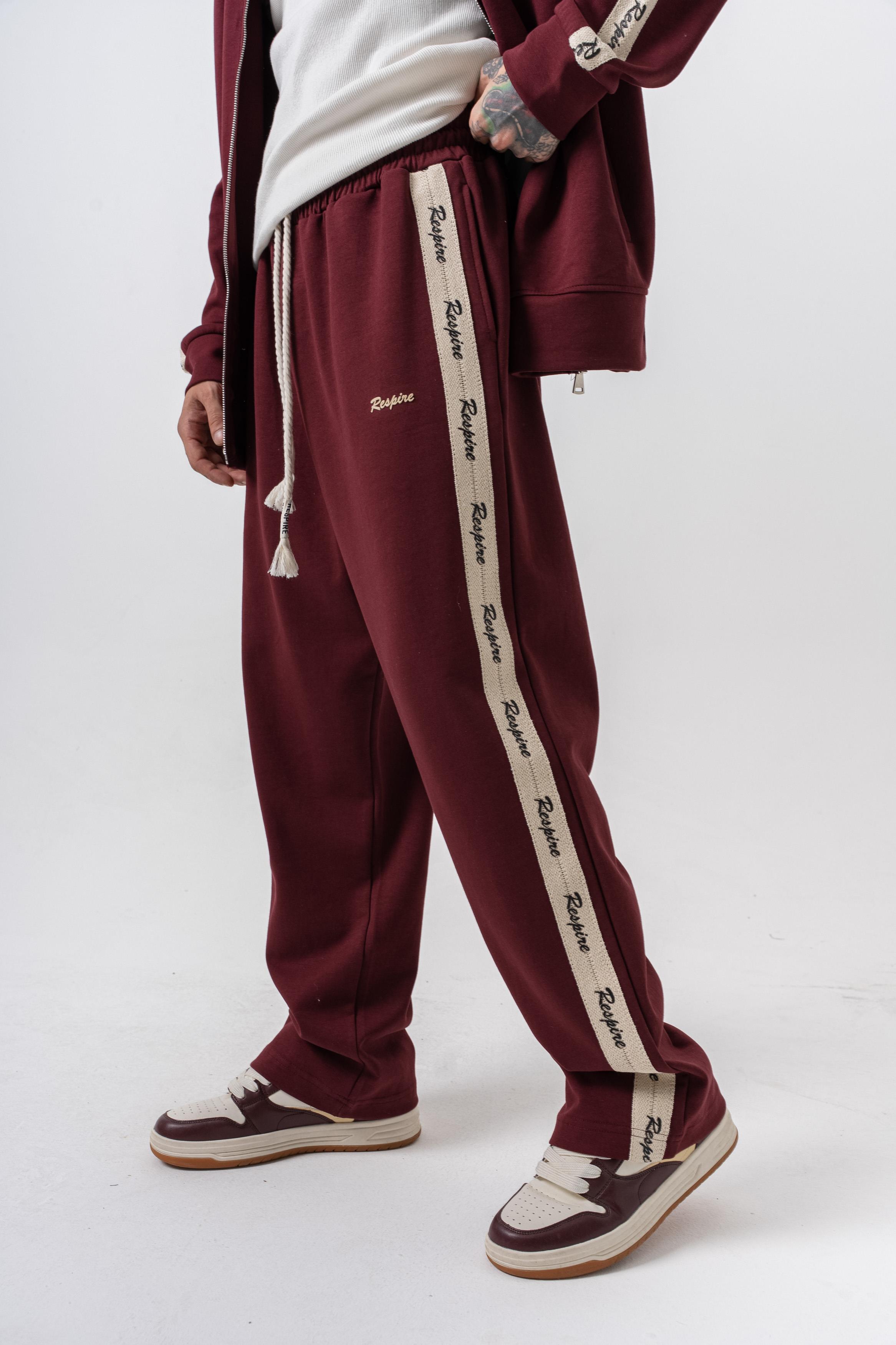 Erkek Respire Şerit Detaylı Kışlık Doubleface Baggy Eşofman Altı Bordo (56261009Bordo)
