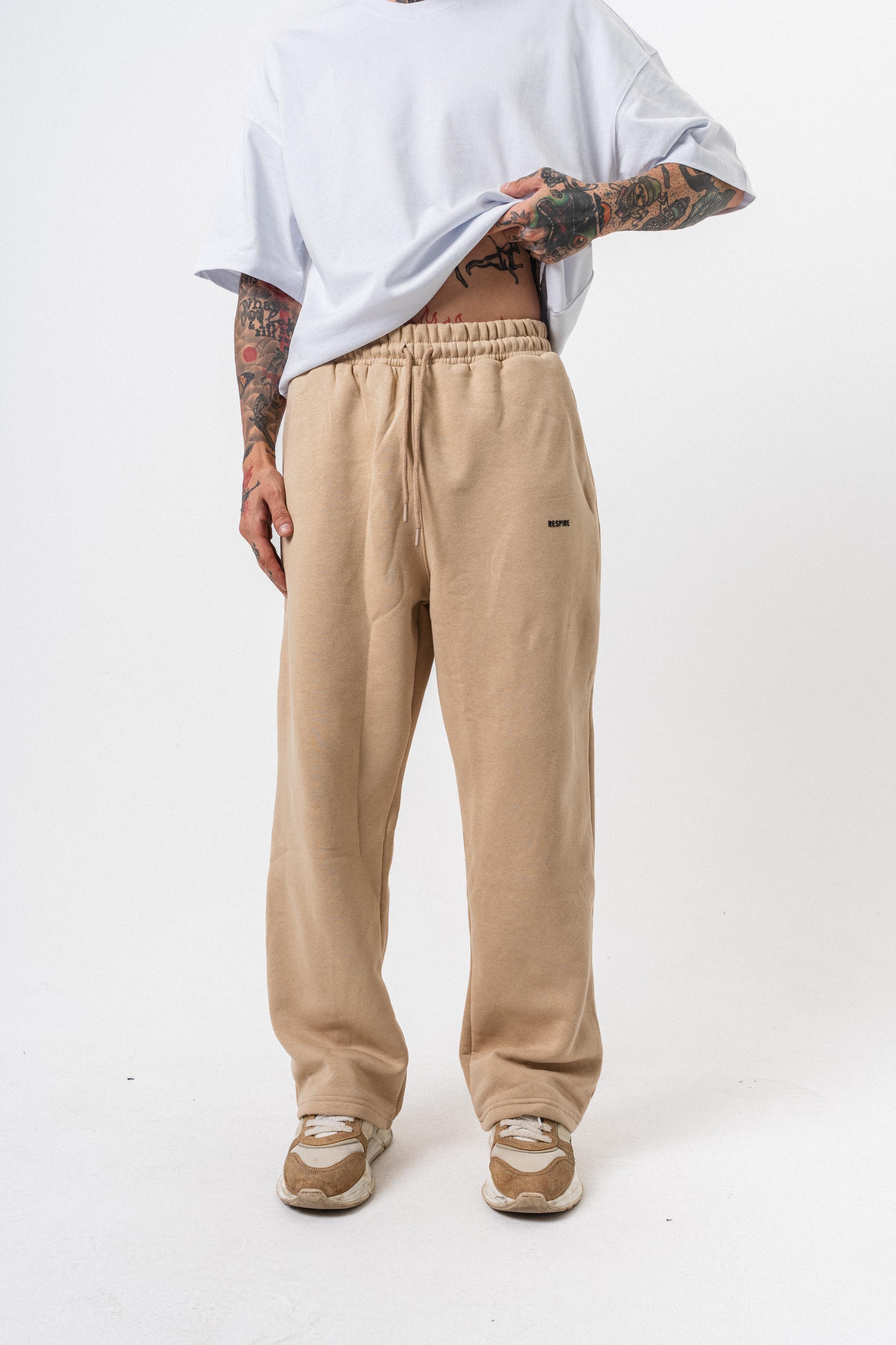 Erkek Respire Yazı Detaylı Basic Baggy Eşofman Altı Bej (56264444Bej)