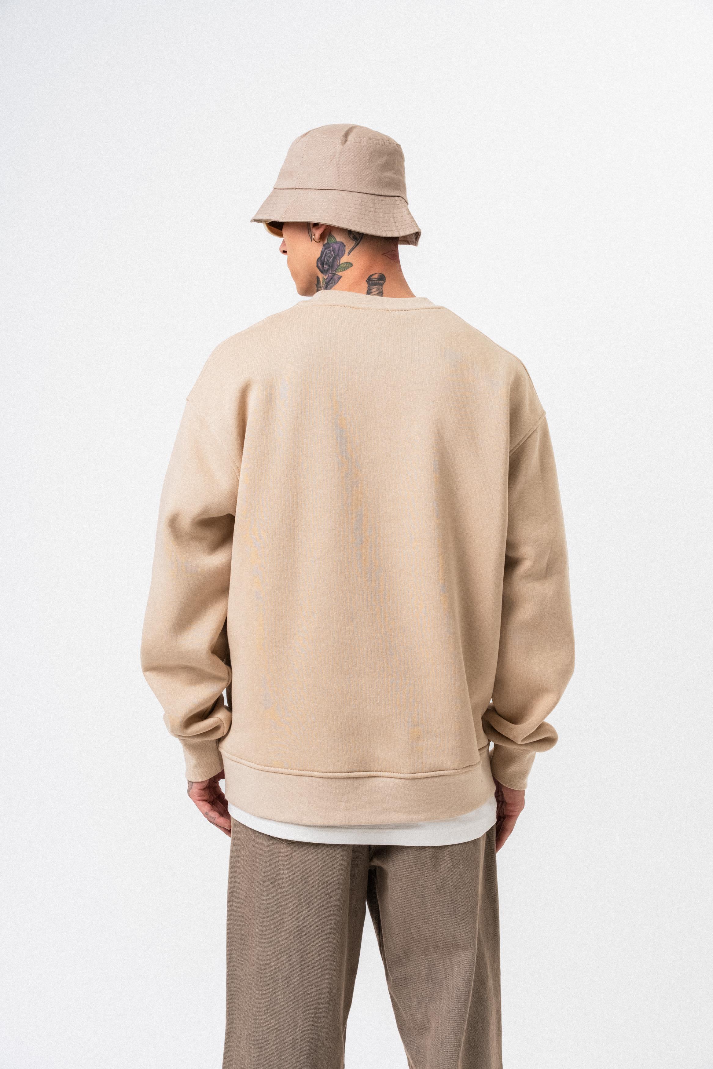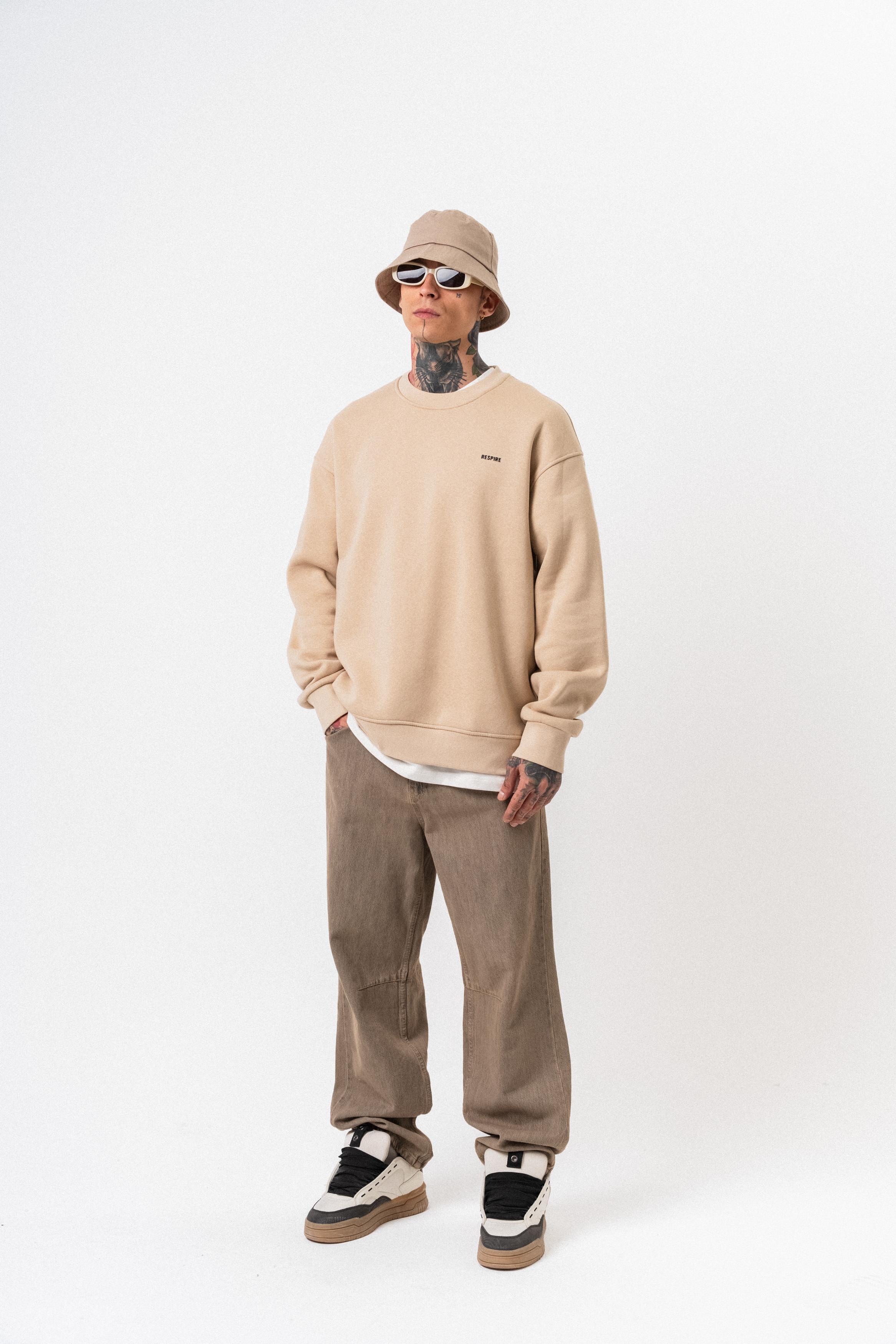 Erkek Respire Yazı Detaylı Basic Oversize Sweatshirt Bej (56261111Bej)
