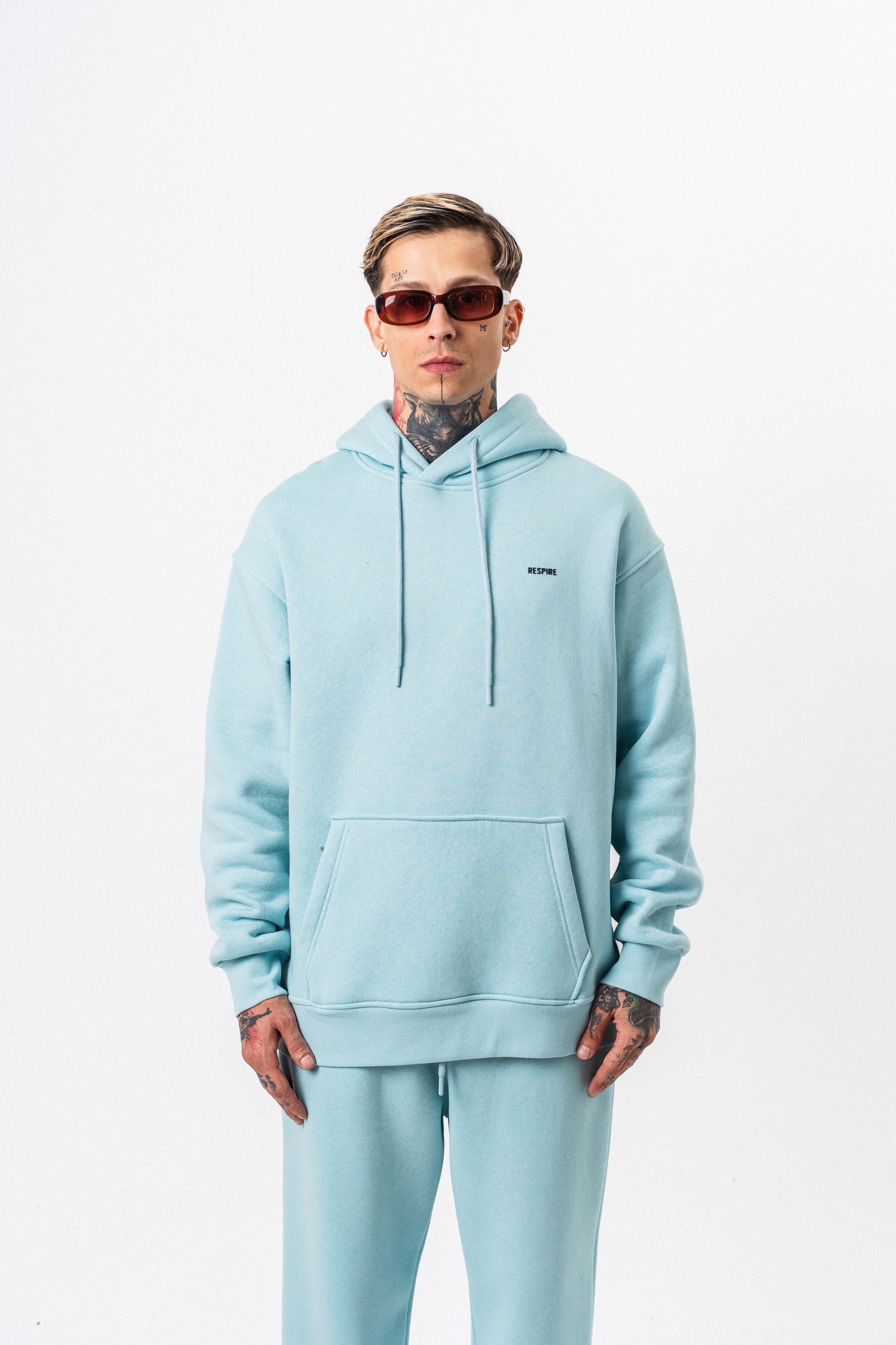 Erkek Respire Yazı Detaylı Kapüşonlu Basic Oversize Hoodie Bebe Mavi (56262222BebeMavi)