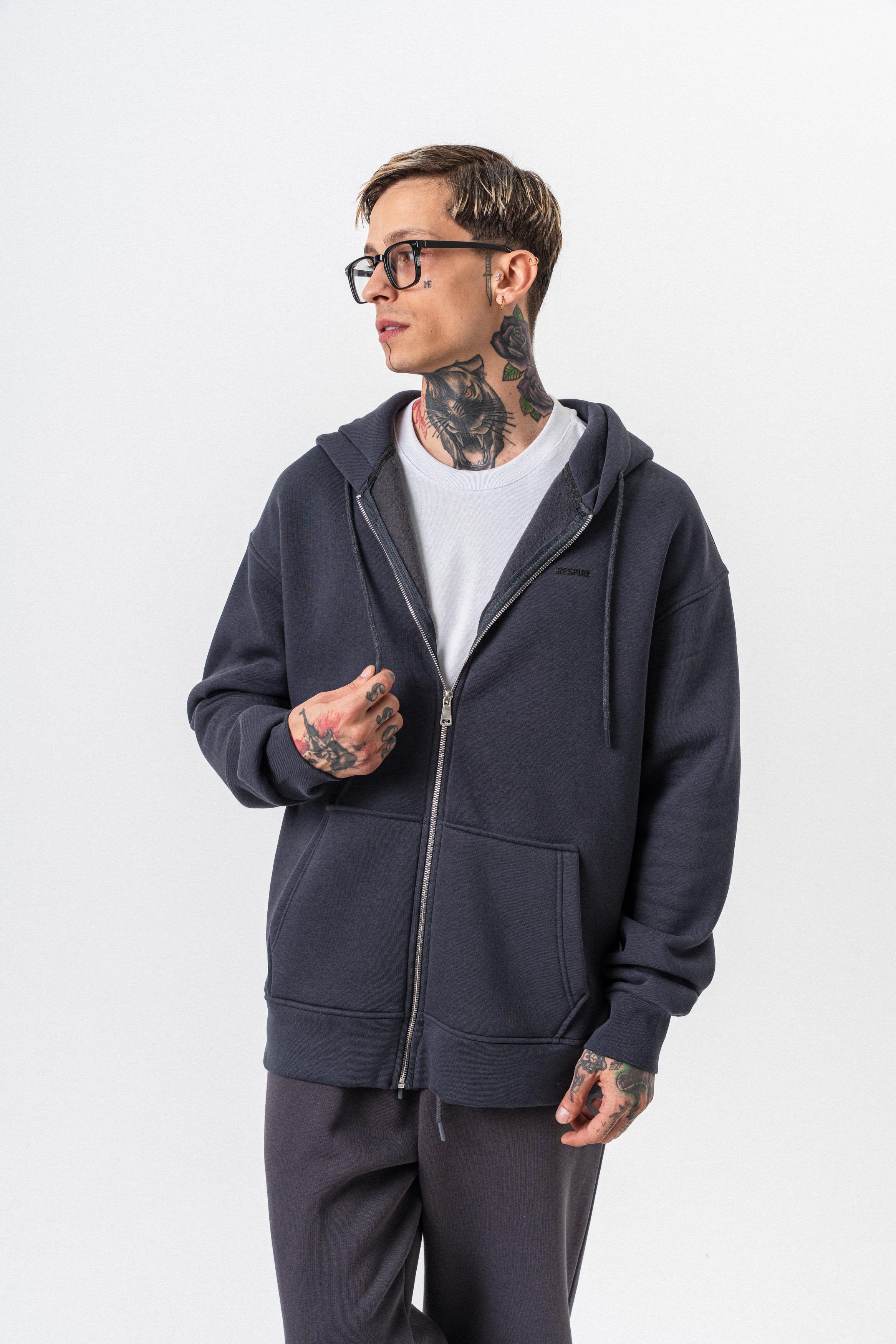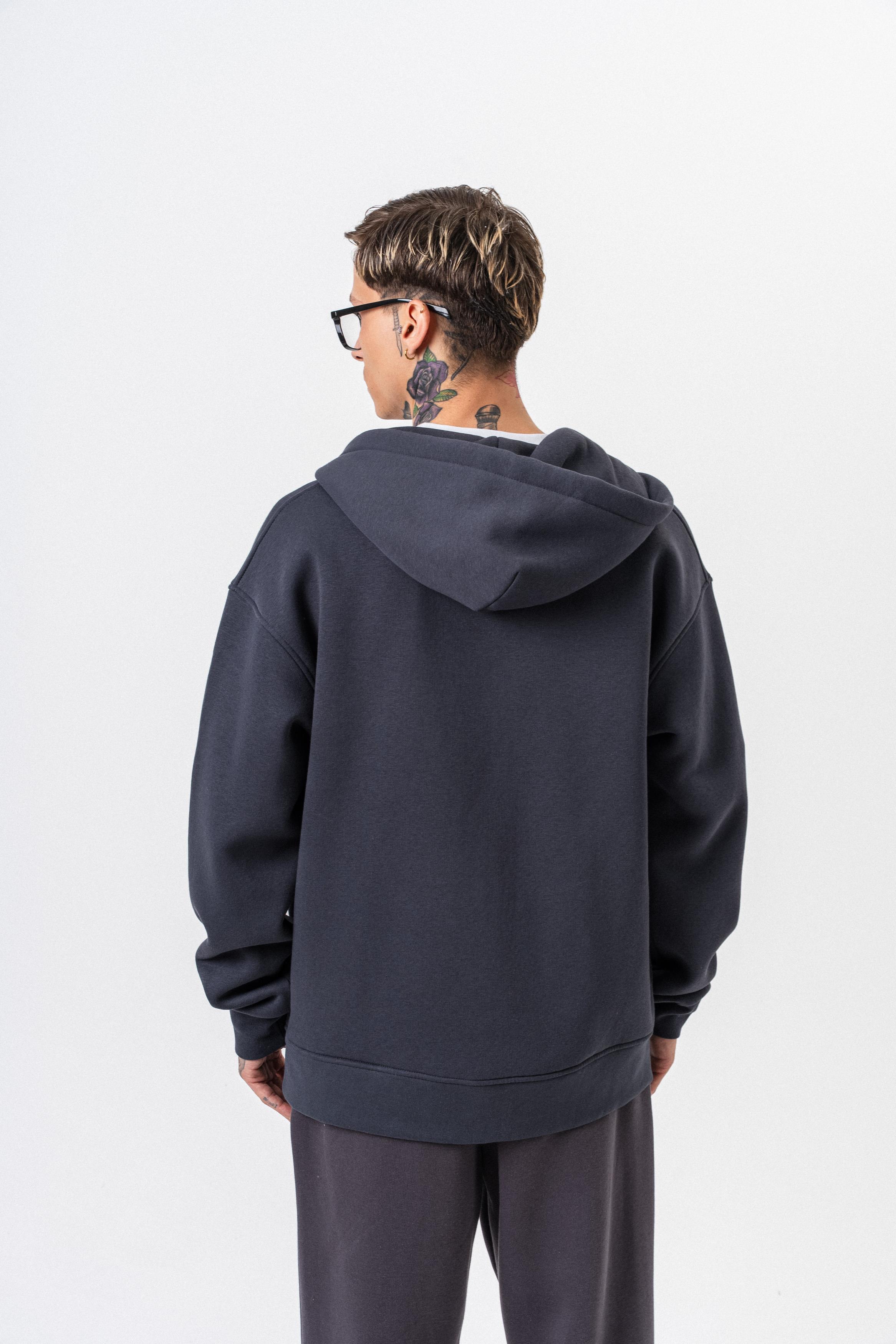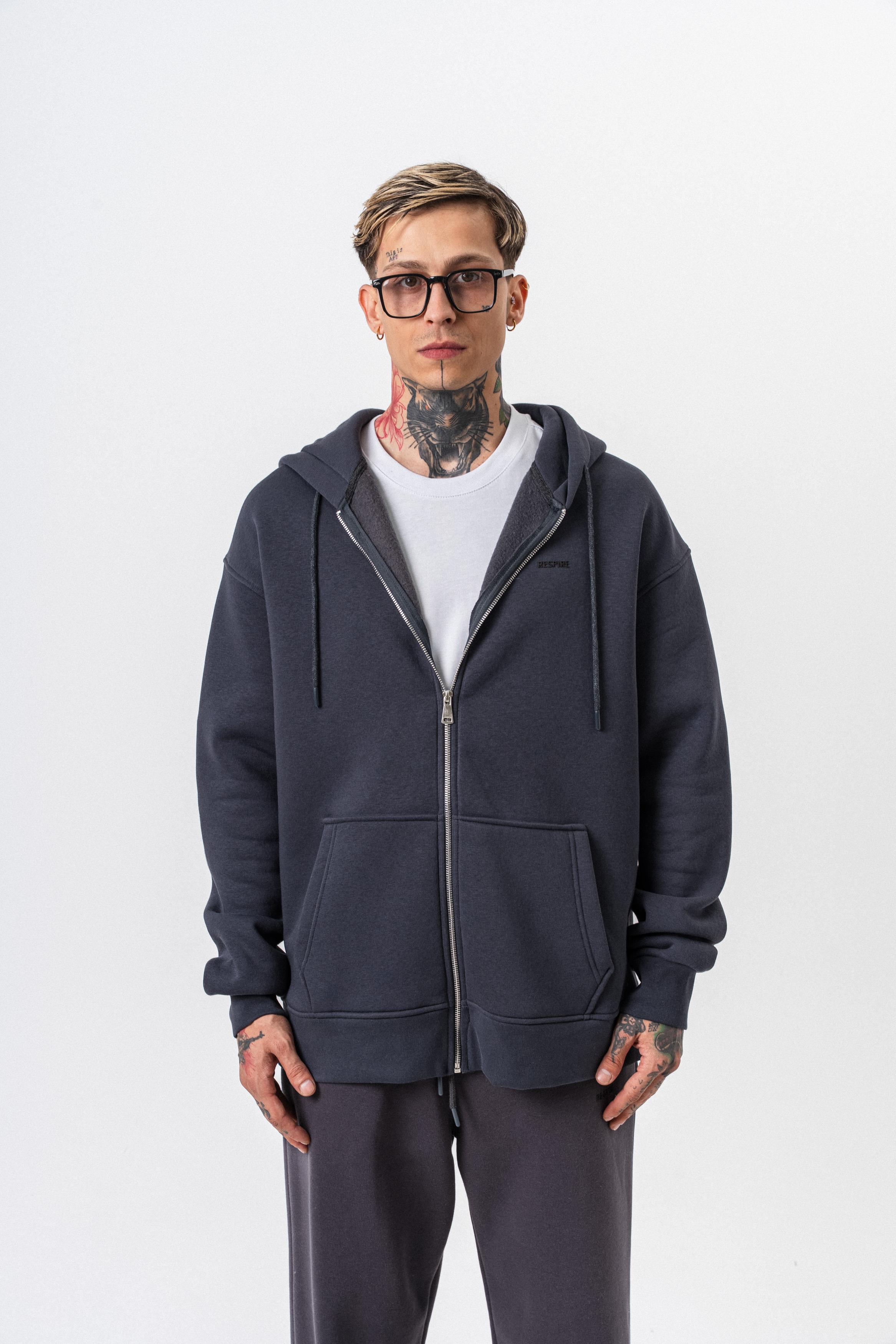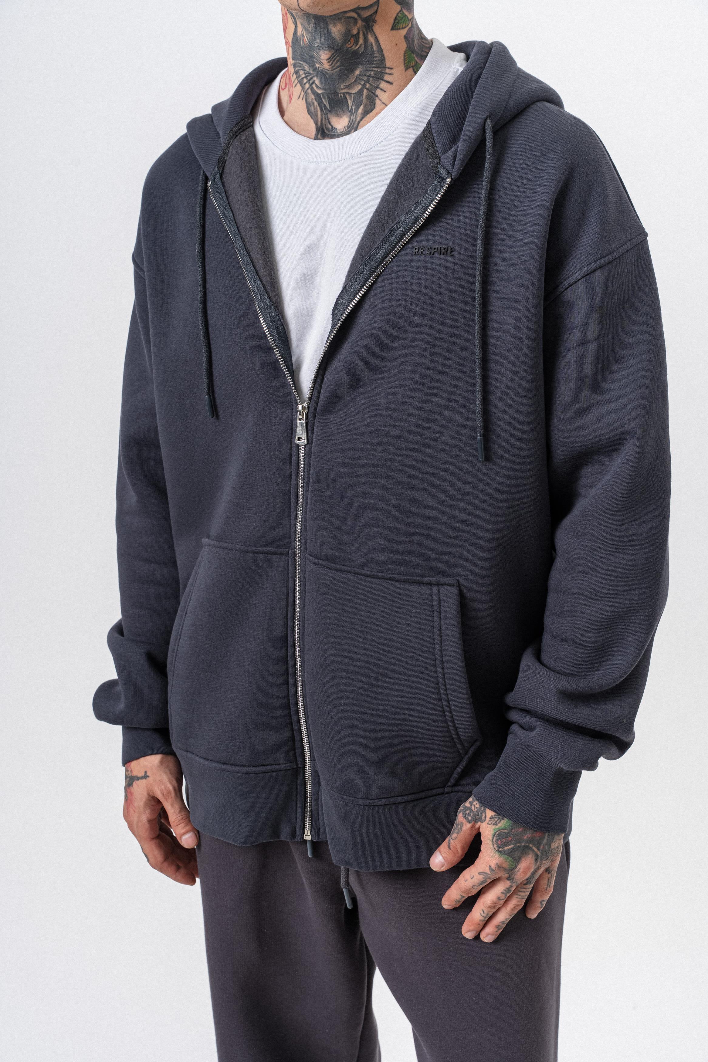 Erkek Respire Yazı Detaylı Kapüşonlu Basic Zip Oversize Hoodie Füme (56263333Füme)