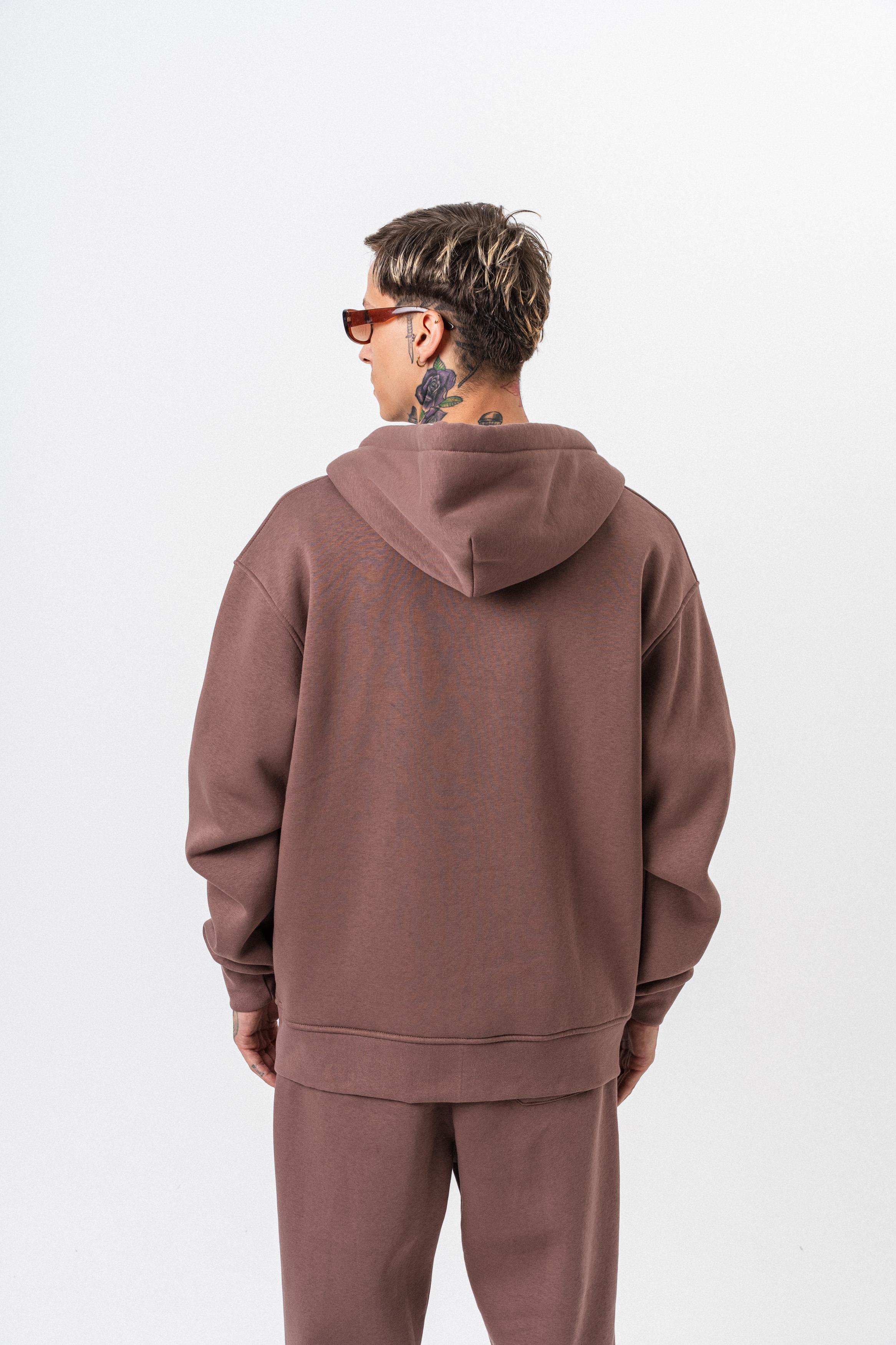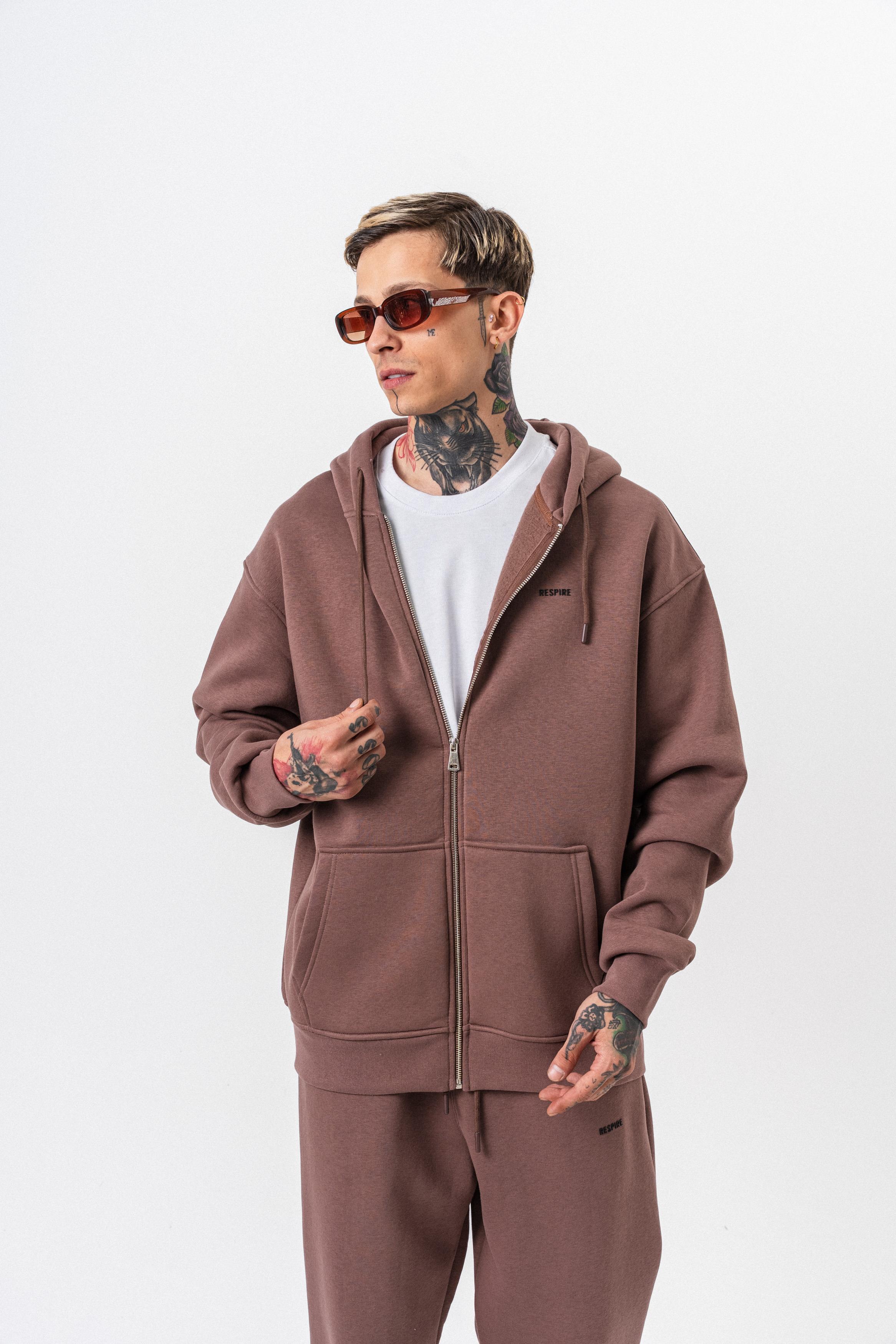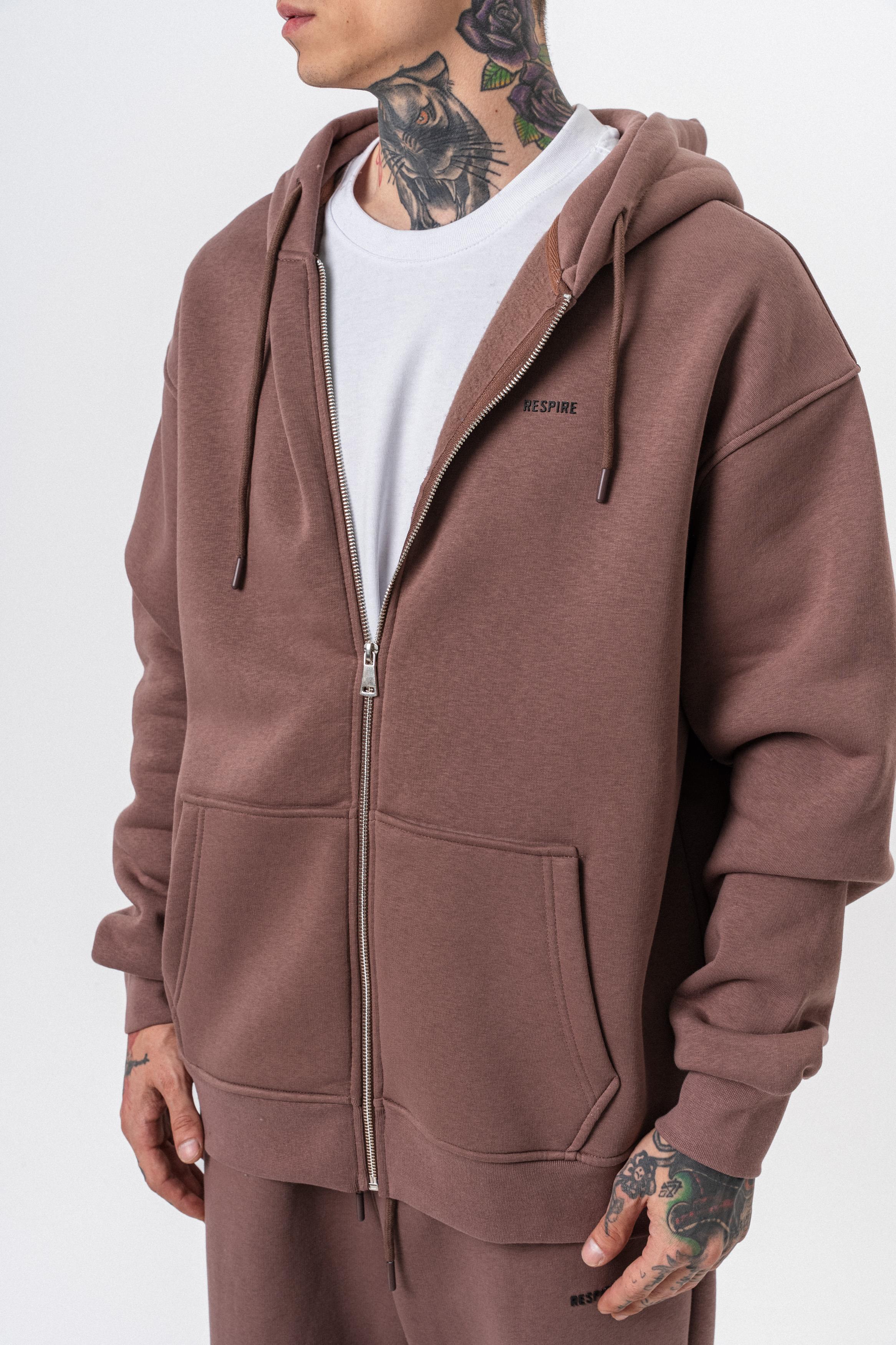 Erkek Respire Yazı Detaylı Kapüşonlu Basic Zip Oversize Hoodie Kakao (56263333Kakao)