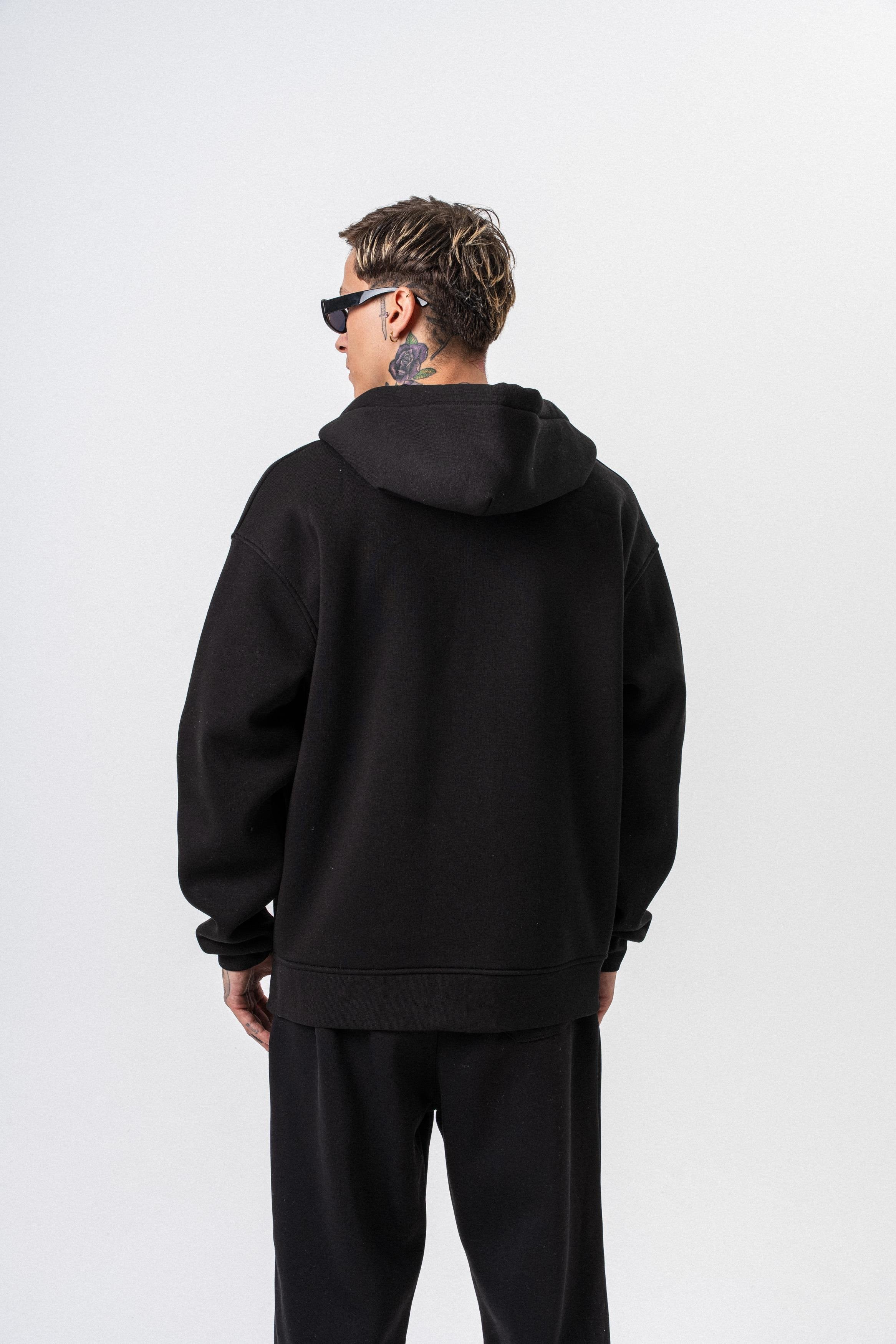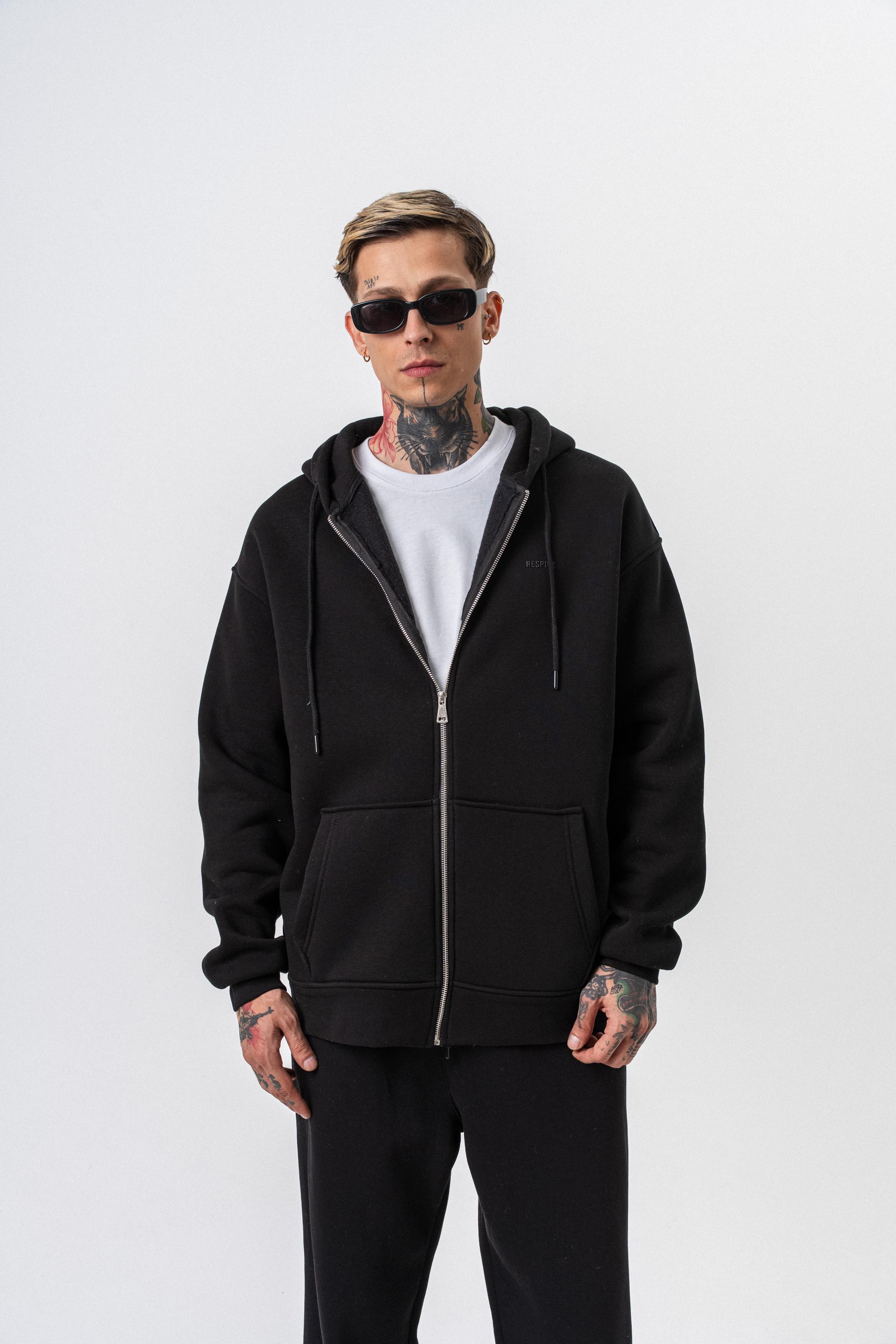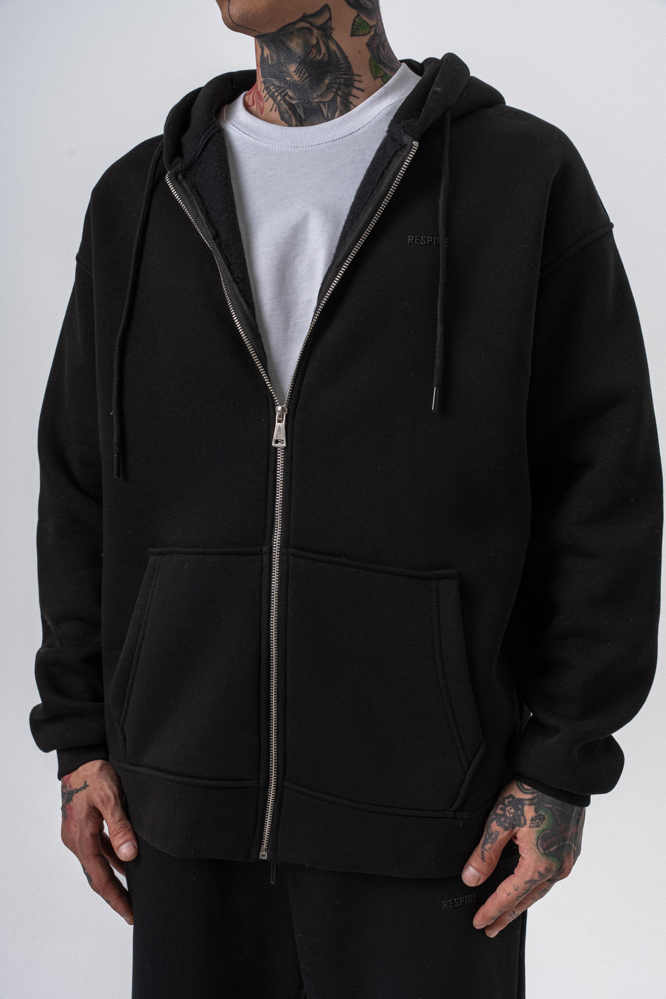 Erkek Respire Yazı Detaylı Kapüşonlu Basic Zip Oversize Hoodie Siyah (56263333Siyah)