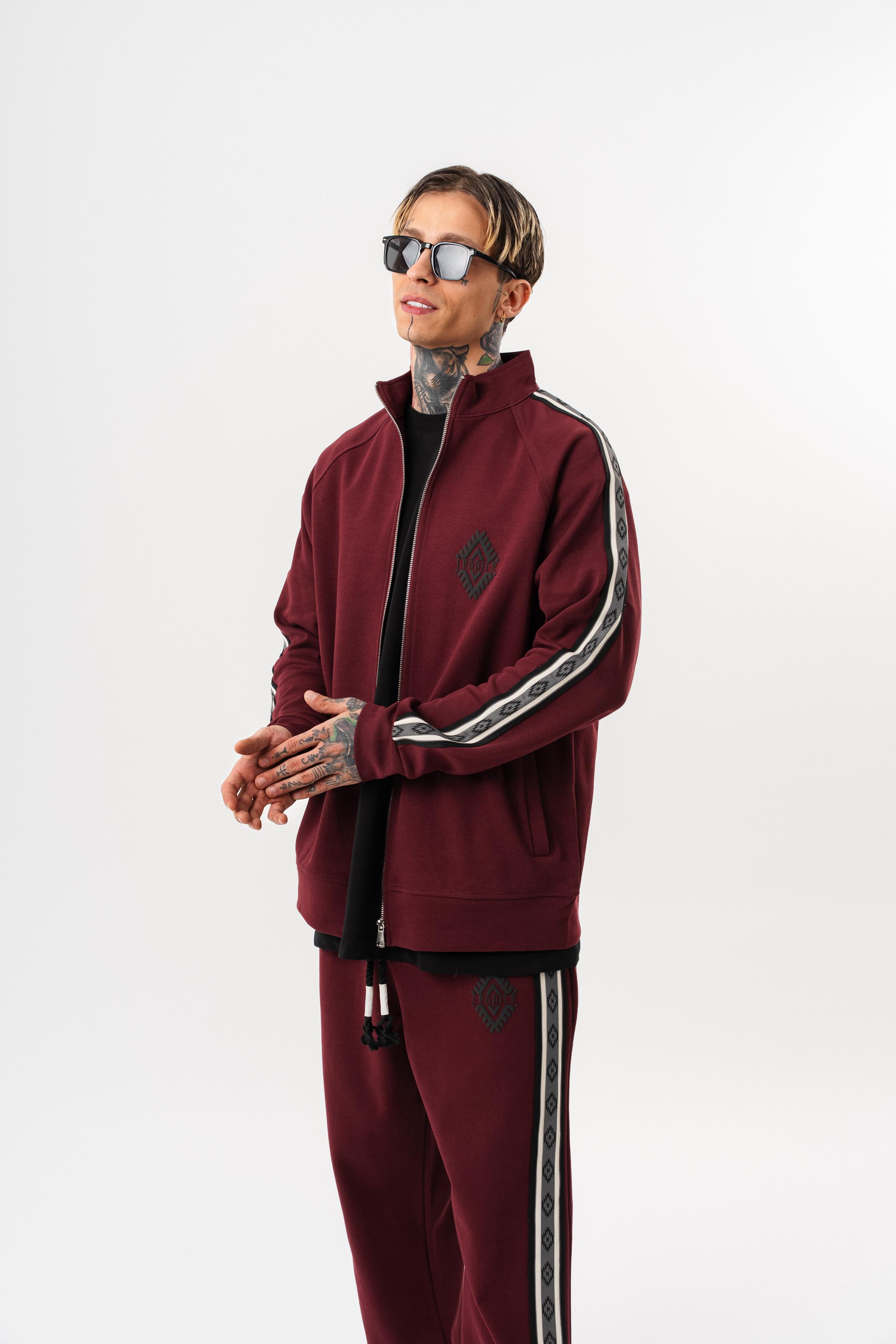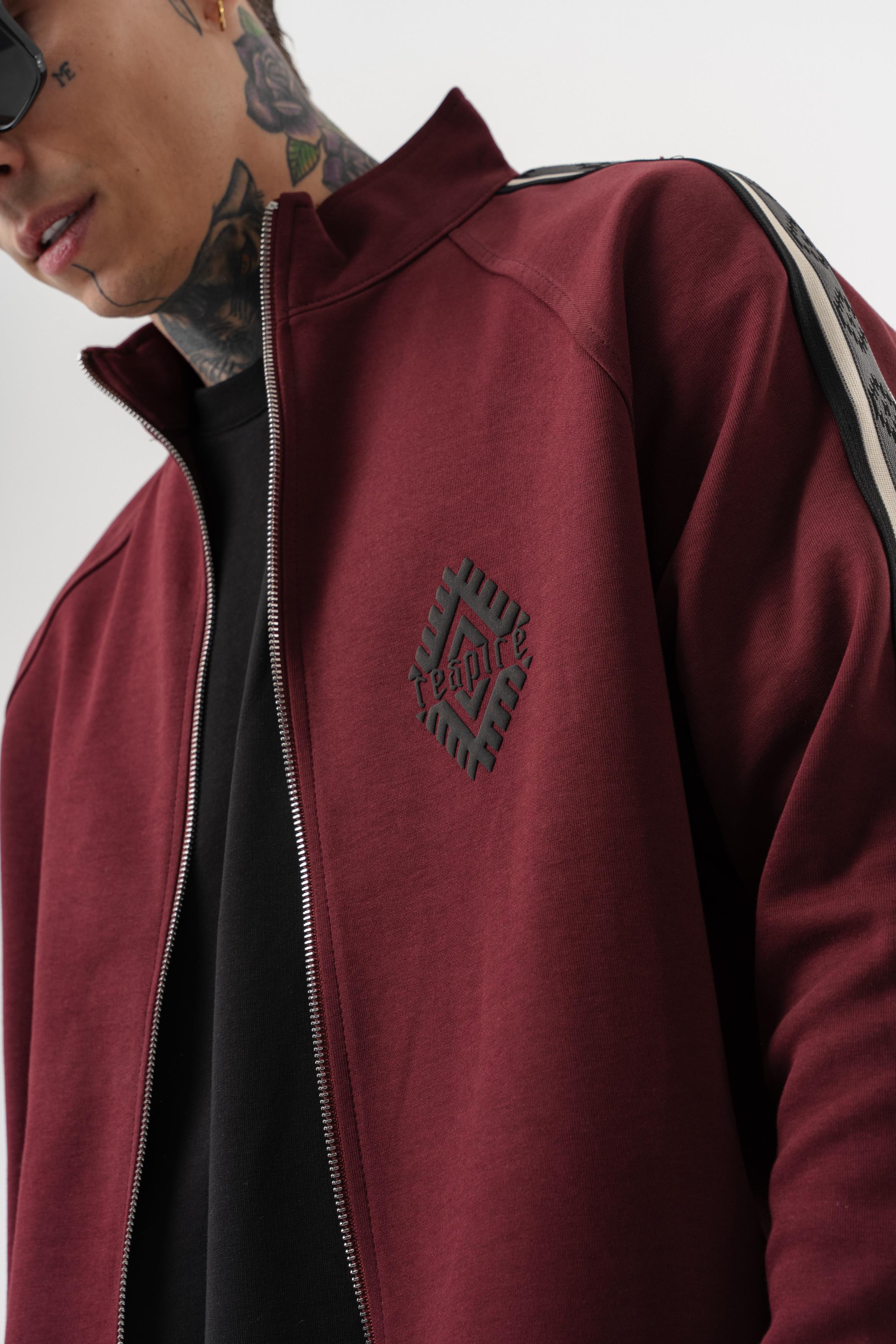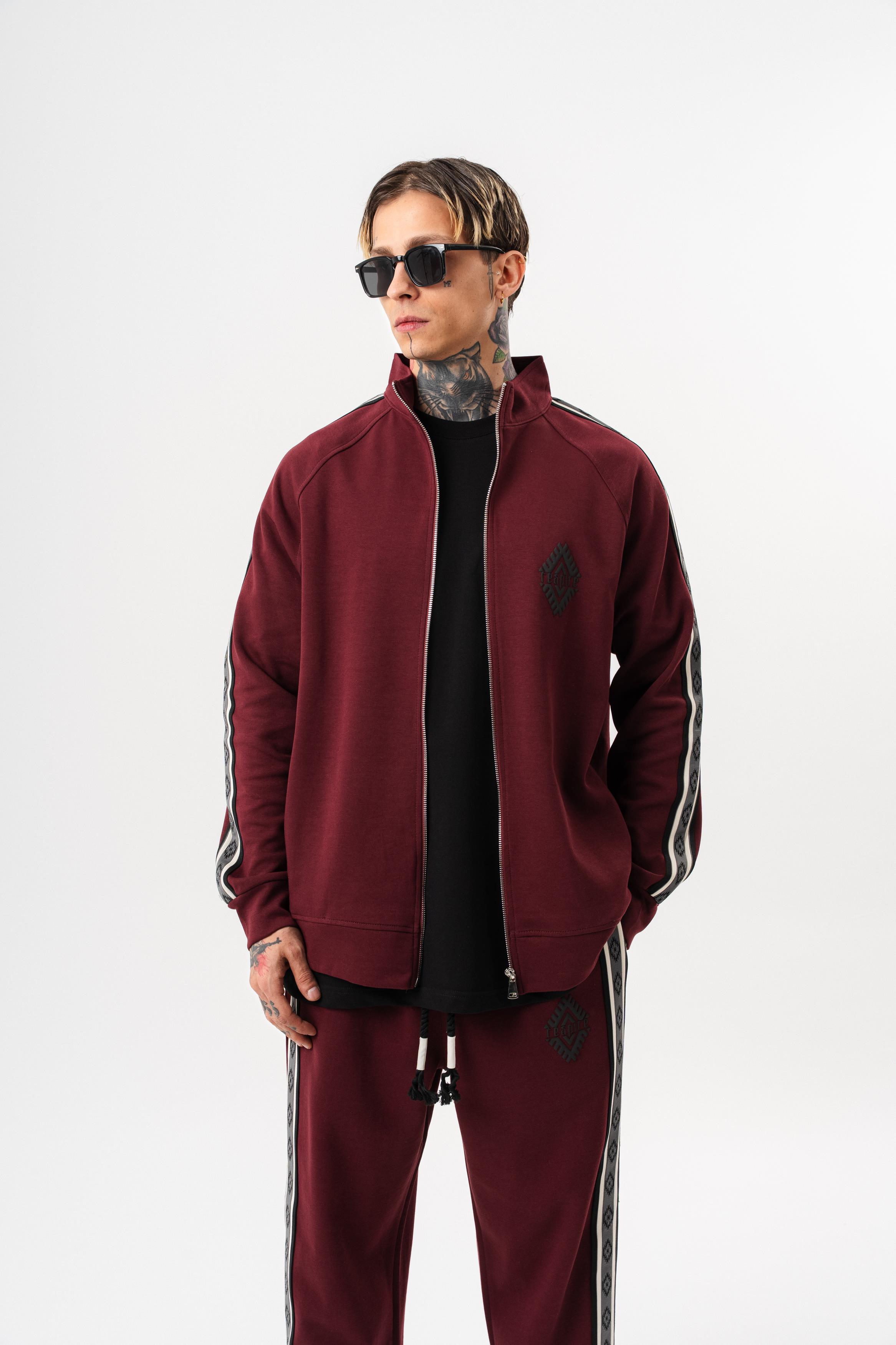 Erkek Şerit Detaylı Dik Yaka Doubleface Zip Oversize Sweatshirt Bordo (56261059Bordo)
