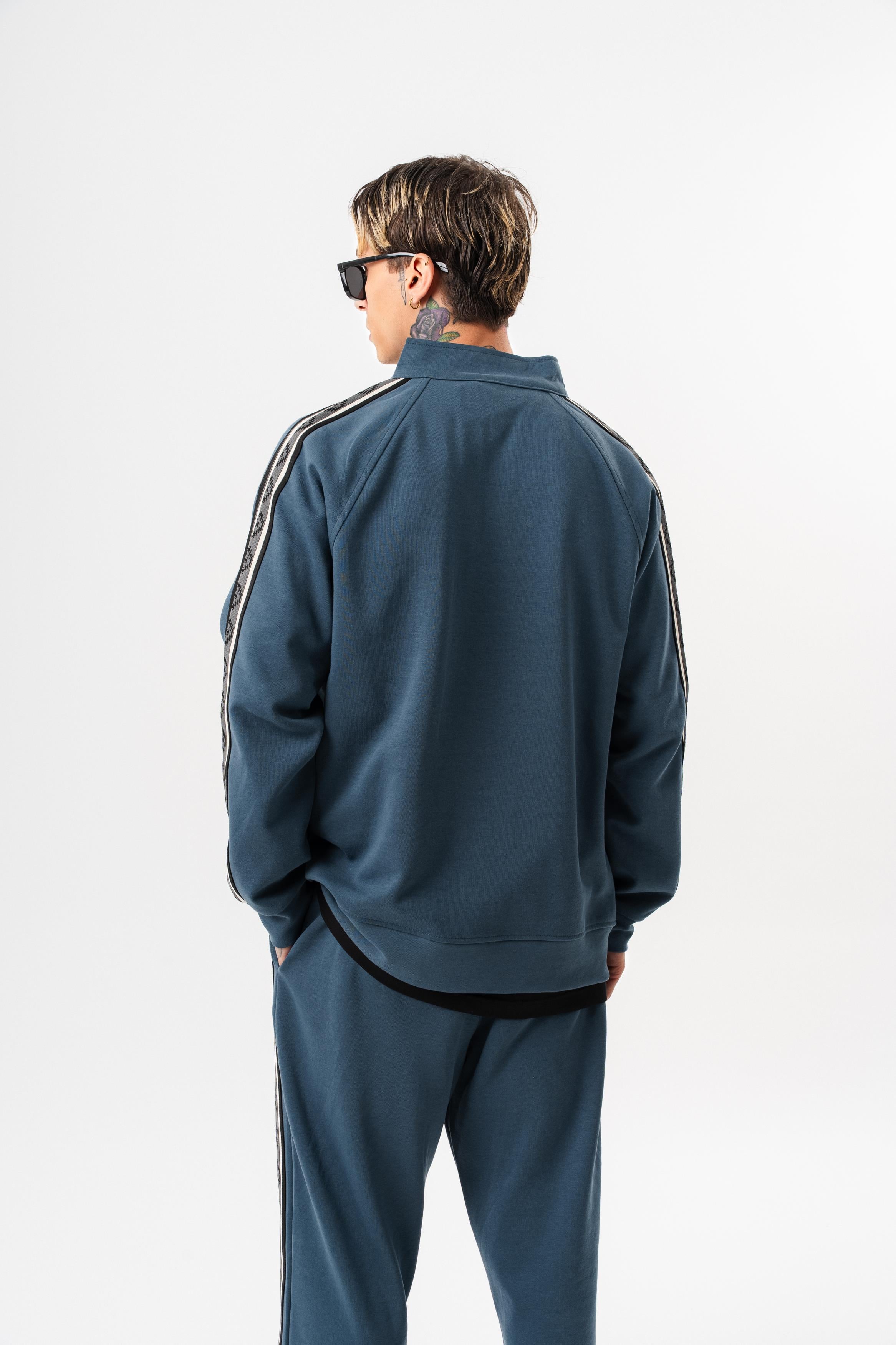 Erkek Şerit Detaylı Dik Yaka Doubleface Zip Oversize Sweatshirt Petrol (56261059Petrol)